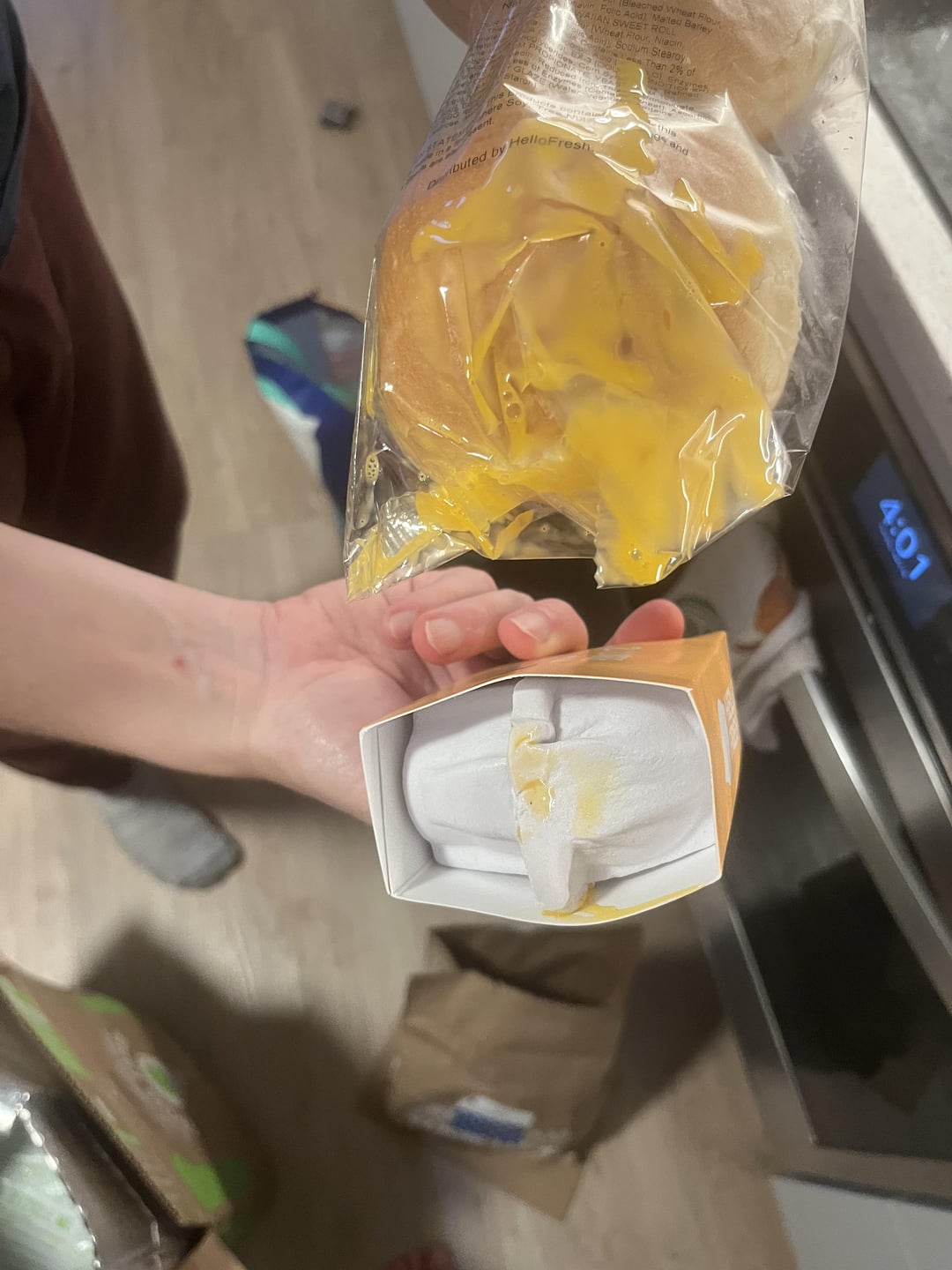 That’s what happens when they throw ice packs on the bottom, toss in the meat, then throw more ice packs on top. Usually it’s the fish or shrimp that bursts open in my deliveries.