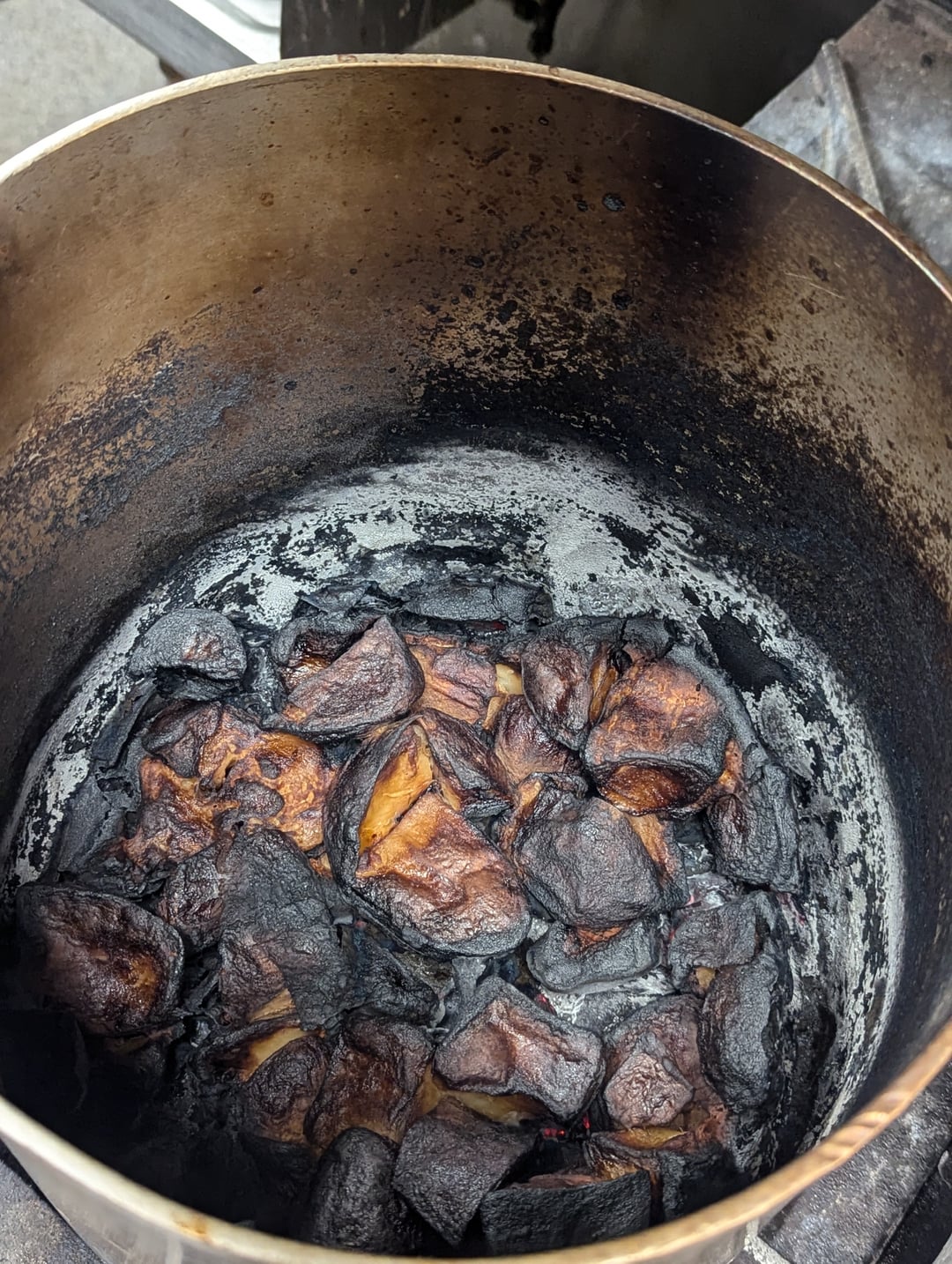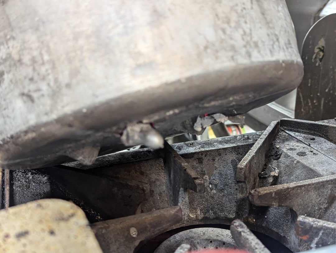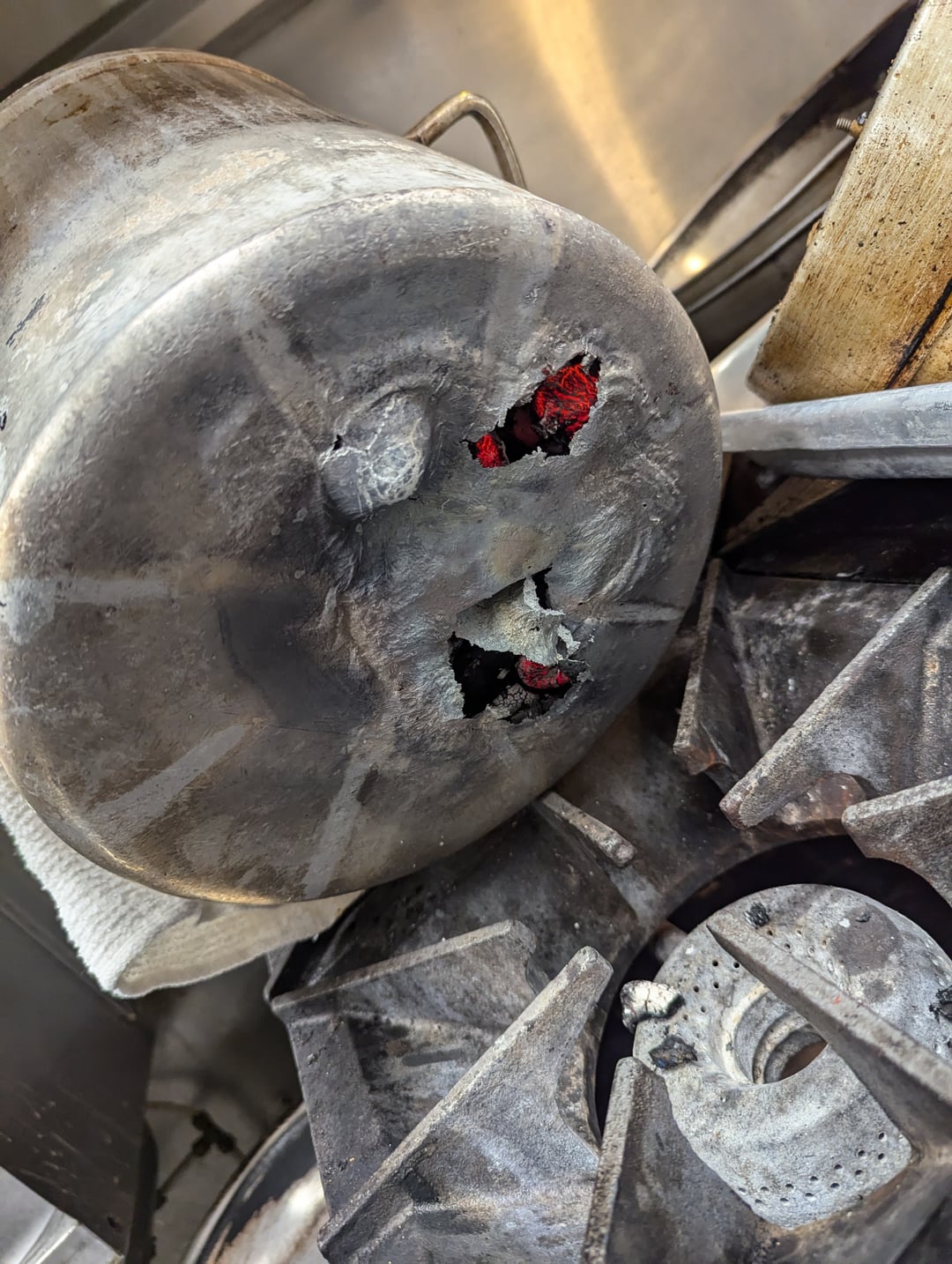 Huh, aluminium pot or steel? Amazing if it can do that to steel. Lucky there wasn’t a full on fire.