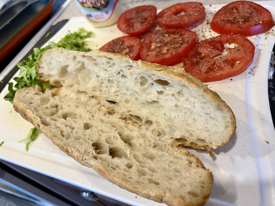 Ingredients look fantastic, but I think the hinge cut is hurting the sandwich.