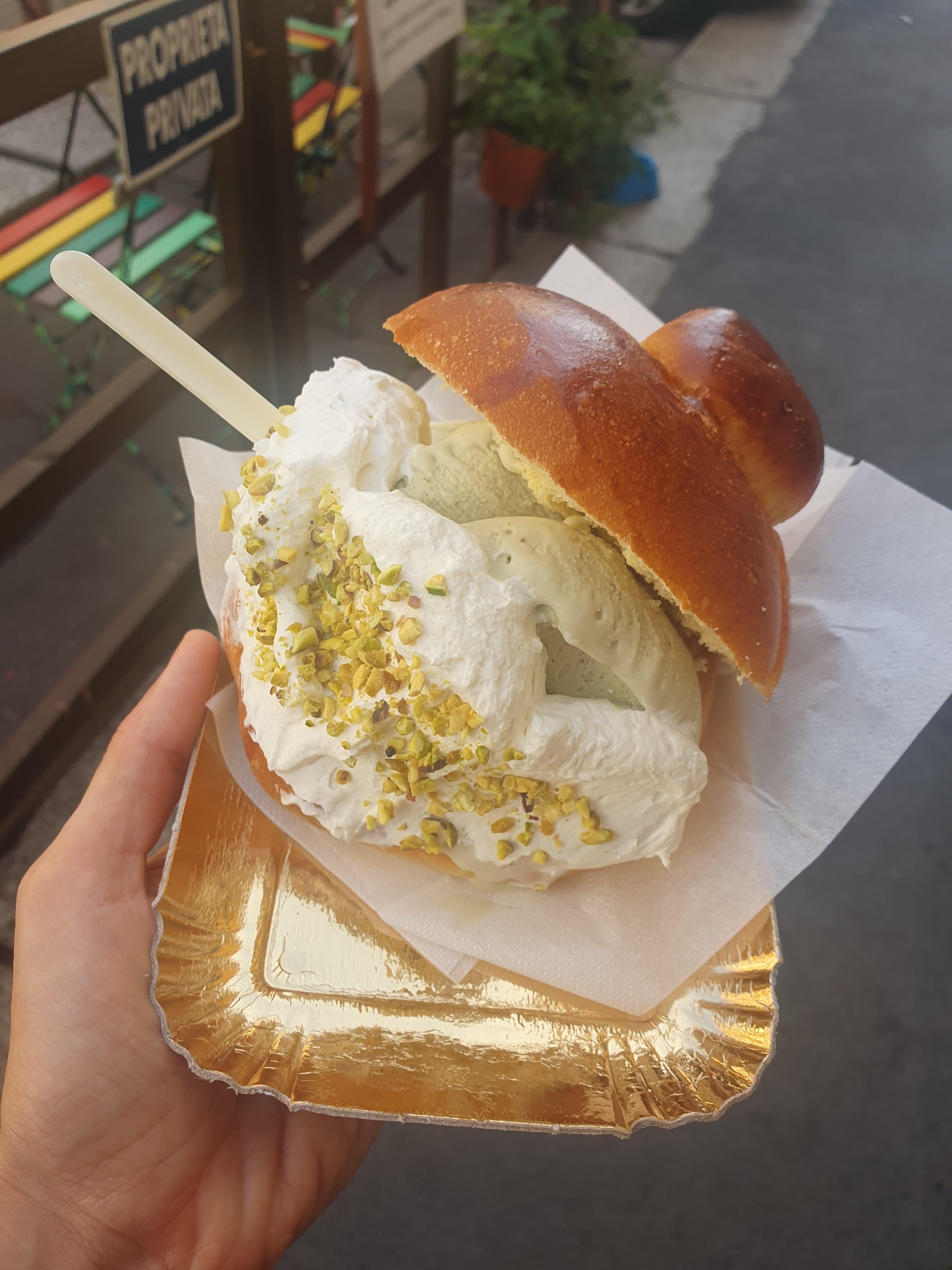 Sicilian Brioche Con Gelato (pistacchio) by louellay Write A CommentYou must be logged in to post a comment.