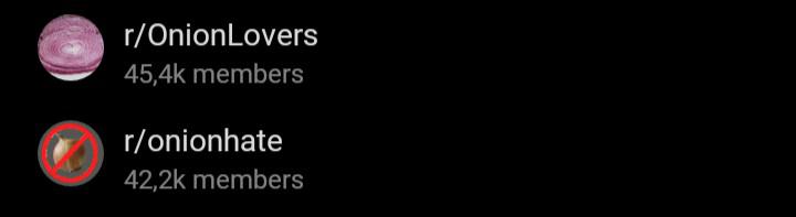 We did it! by plinashead 10 Comments Full_Ad9666 1 year ago Love will always conquer hate Deep_Flounder5218 1 year ago We have way more members than that surpriserockattack 1 year ago We did that long ago lmai CandelaConnoisseur 1 year ago https://www.reddit.com/r/OnionLovers/s/qpBzBbjGDlThis is a repost from 4yrs ago JusCogensBreaker 1 year ago If you hate onions you have the tastebuds of a toddler JusCogensBreaker 1 year ago https://preview.redd.it/i2ge5wrltzrd1.png?width=472&format=png&auto=webp&s=b82f8d0d3596594e0d9fe6689e2587b07dc1167f? Vendidurt 1 year ago We even know how to capitalize things. alphabatic 1 year ago this is a super old screenshot. are you a bot? we surpassed them by an inordinate amount a long, long time ago Cheeky-Chipmunkk 1 year ago Looks like they haven’t grown much over the yearshttps://preview.redd.it/0zl6j9yw70sd1.jpeg?width=1284&format=pjpg&auto=webp&s=71bc883df5c6c9f450f0e856dcf0932a24aceb48 marycjones1 1 year ago People who enjoy onions (a normal amount) make up most of all people. People saying they think onions are disgusting has always felt like a child’s take. We are superior.Write A CommentYou must be logged in to post a comment.