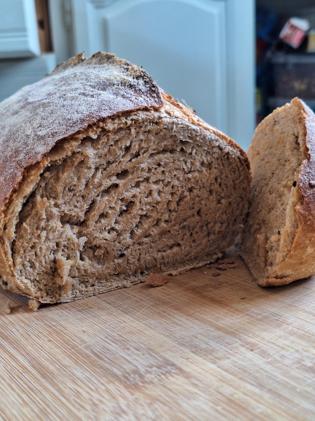 My Wife Told Me “it tastes great, but the crumb looks awful” 🥲 (I didn’t use sourdough starter or poolish or anything. It’s a simple semolina + cereal flour overnight dough)