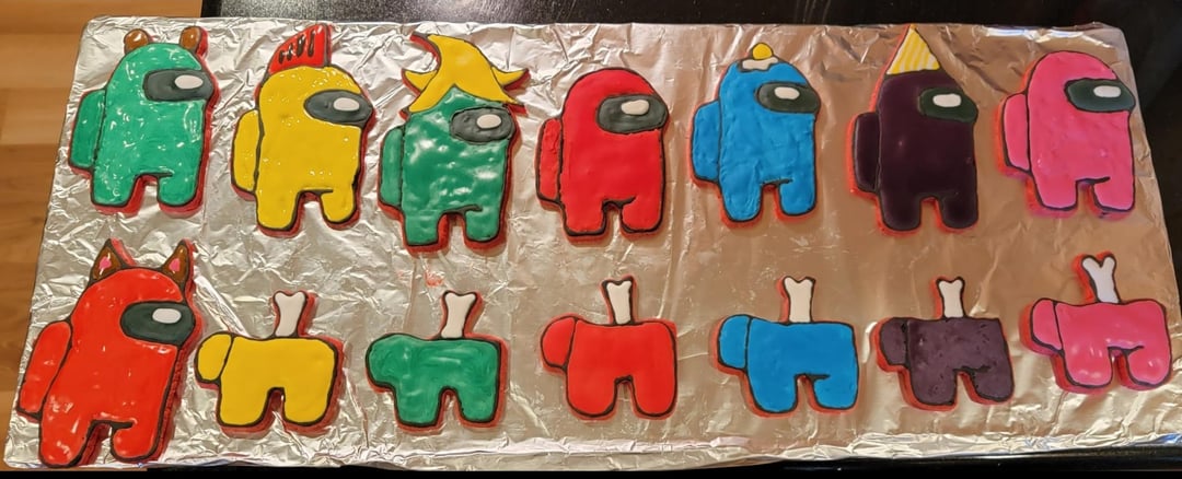 Handcut these cuties as a birthday gift for my bff. Her husband snuck me in and I surprised her with these while she was streaming video games on her birthday. Icing is not the smoothest, but love how they came out.
