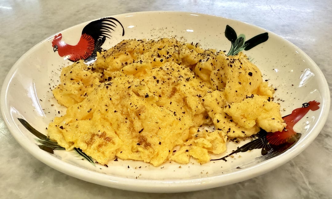 Picture #1: Buttered Omelette (ingredients: Butter as cooking fat, 4 eggs, 1 Tbsp milk, salt and ground black pepper to taste. Method: Heat pan with butter, until butter melt, meanwhile whip 4 eggs with a pinch of salt and a table spoon milk. Once butter is melted and sizzling, lower heat to lowest and pour eggs mixture in. Once cooked to your liking, plate and top with fresh ground black pepper)