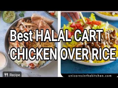 Halal Cart Style flavorful, marinated chicken over fluffy yellow rice topped with the famous, creamy white sauce