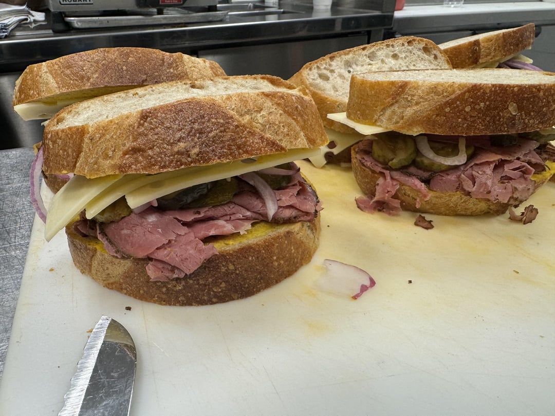 Pastrami, Swiss, mustard, pickles and red onions. by nooyork 1 Comment KingJames_the_Wicked 1 year ago The top slice has to be spun around & put on top instead of just flipped over on the horizontal…this is completely wrong. Start again.Write A CommentYou must be logged in to post a comment.
