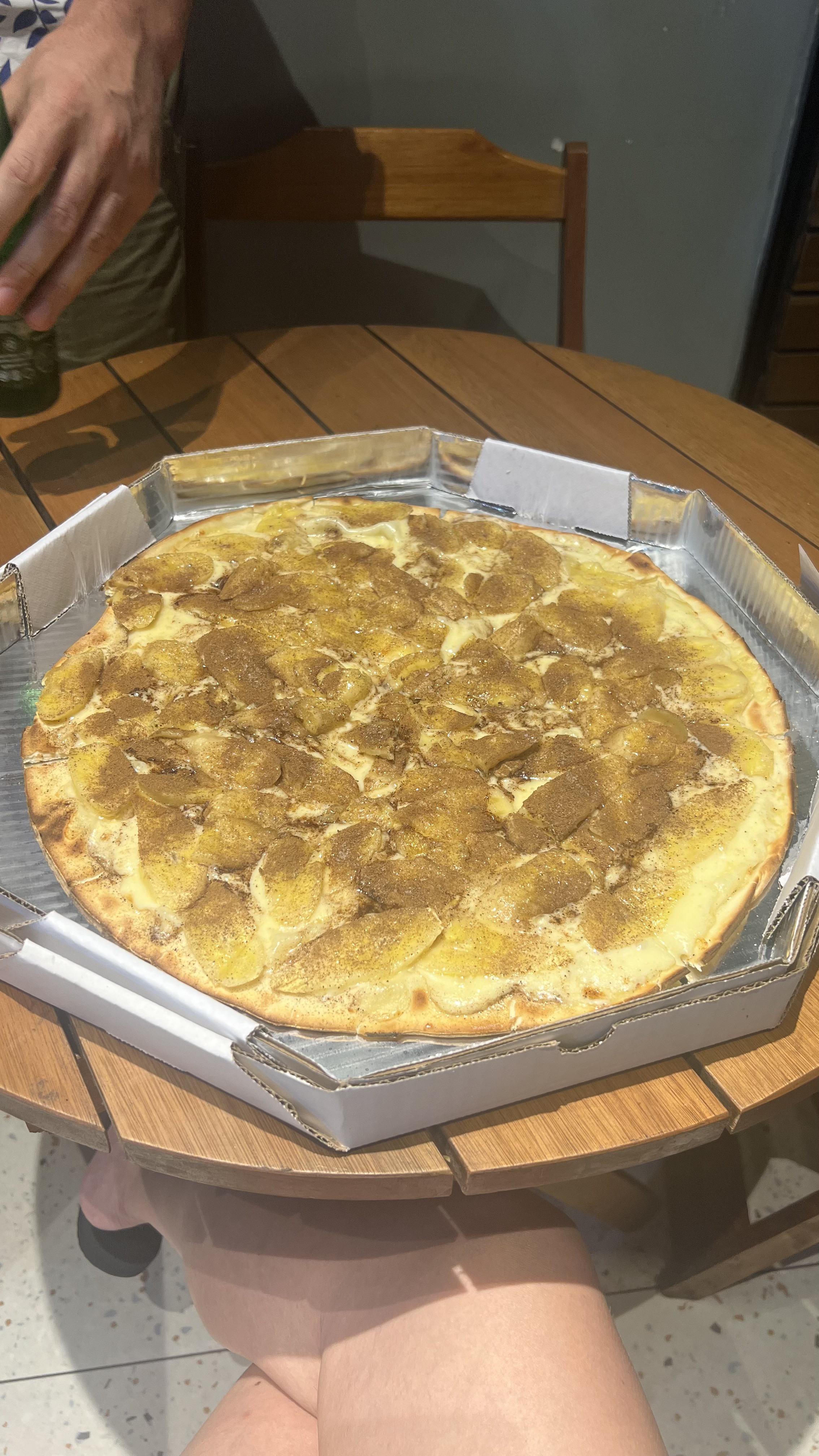 American fussed over pineapple. Brazil has banana cinnamon pizza. by xamffm 8 Comments John-Fefin-Zoidberg 1 year ago I’d eat that OrochiKarnov 1 year ago I’ll try it redjellonian 1 year ago That isn’t a pizza, it’s a pizza shaped dessert item. andrewthecool1 1 year ago It’s good, not my favorite, but definitely one of the top dessert pizzas Boring_Name06 1 year ago I thought we where chill with dessert pizza OzzieGrey 1 year ago Simple dessert pie, no issue here.The real issue is pineapple on meaty pizza when it’s not cut and roasted properly. anonkebab 1 year ago Desert pizza is great Ok-Top8550 1 year ago Among the dessert pizzas we have back in Brazil, that’s one of my favorite. I really miss that one.Write A CommentYou must be logged in to post a comment.