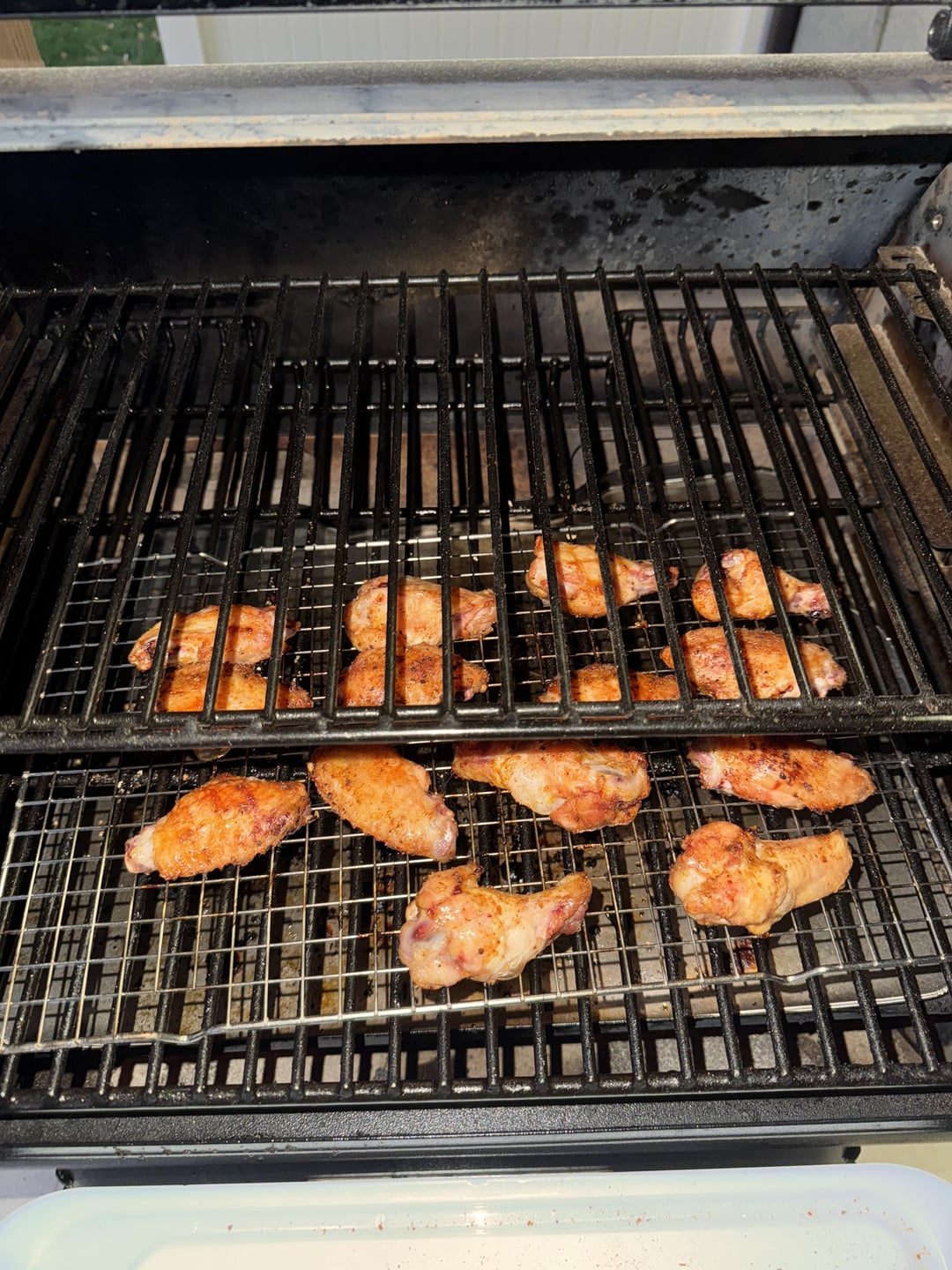 – Seasoned with Hot honey hog and Traeger chicken seasoning mix