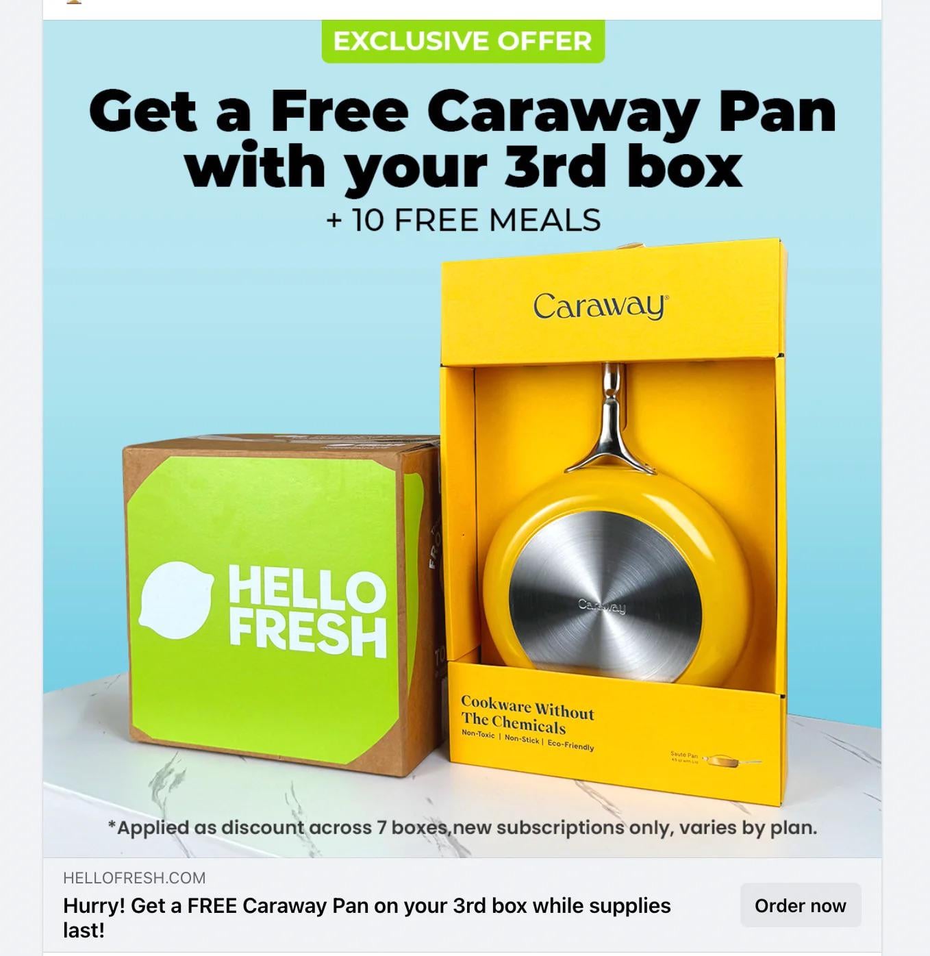 I signed up for this promotion of getting a free caraway pan with the delivery of 3 boxes. After getting my third box, I reached out to hello fresh to ask how to get my free caraway pan and they sent me a google doc to fill out with my customer id #, my full name, email address and top 2 choices of the pan I’d like. The form said that after I submitted it, I’d hear from caraway within 14 days by email on how to redeem my free pan and get it shipped to me. After 2 weeks of waiting, I contacted hello fresh because I had yet to hear from caraway. They escalated the issue to caraway and said I’d hear back within 24-48 hours. I then contacted hello fresh again after waiting 3 days because I hadn’t heard from caraway yet. At this point, I’ve called and spoken to 4 different customer service reps trying to get this resolved. Is anyone else having this issue? And if so, how did you get it resolved? Should I be contacting caraway directly? I just want my free pan already or a refund for the boxes at this point because I wouldn’t even have signed up for the promo had it not been for the free pan. I just don’t think that we as the customer should have to take the time and effort to keep calling in/emailing this many times and get the run around to redeem this promotion. Super frustrated and would appreciate any help/advice on the matter 🫶🏼 Thx