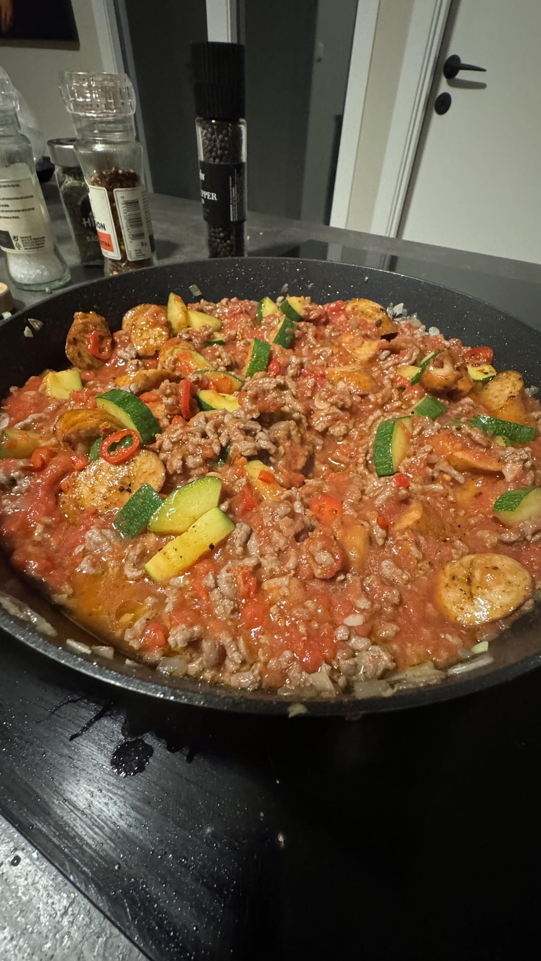Put zucchini with ur chorizo.