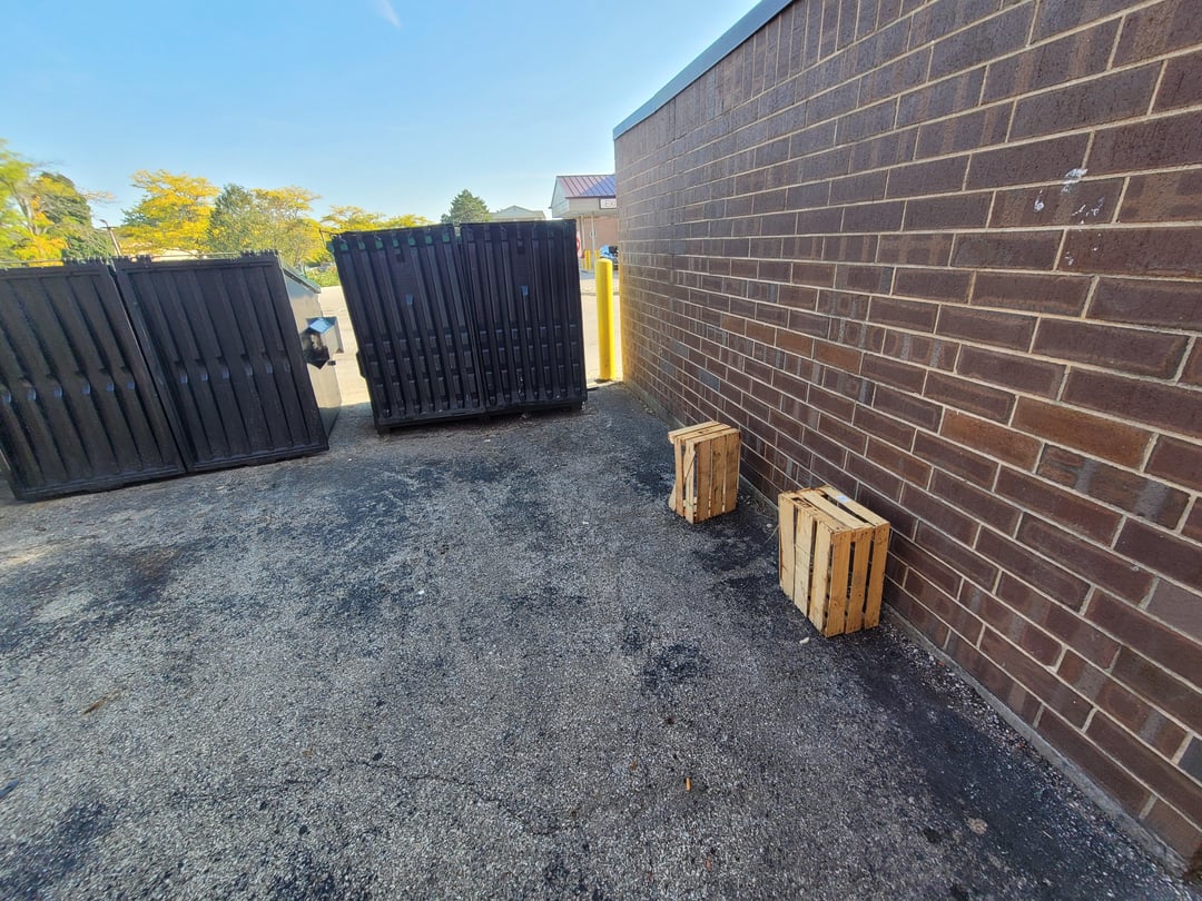 We use plastic beer/other bottle crates in the smoking area. 😛