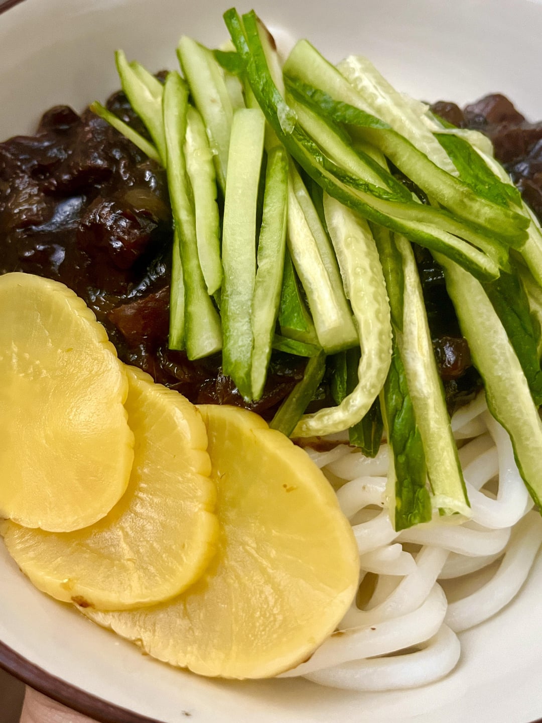 Staple in our home. Love this dish so much! And yep, we like a lot of cucumbers in ours. The danmugi/takuan has bonito in the pickling liquid which gave it a really nice savory flavor.