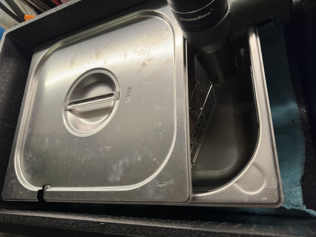 I’ve done this but with the polycarbonate gastronorms as you can then drill through the lid with a hole saw which fits the circulator well (depending on the model). I use an Anova where a 60mm hole is basically perfect. I also bought a spare foam lid for the outside box as it was only like £12 and drilled a hole through that as well… but have the original lid if I ever want to use it as designed. Could obviously drill through the metal… but polycarbonate is far easier! Only have a photo of the outside to hand… so, snap!