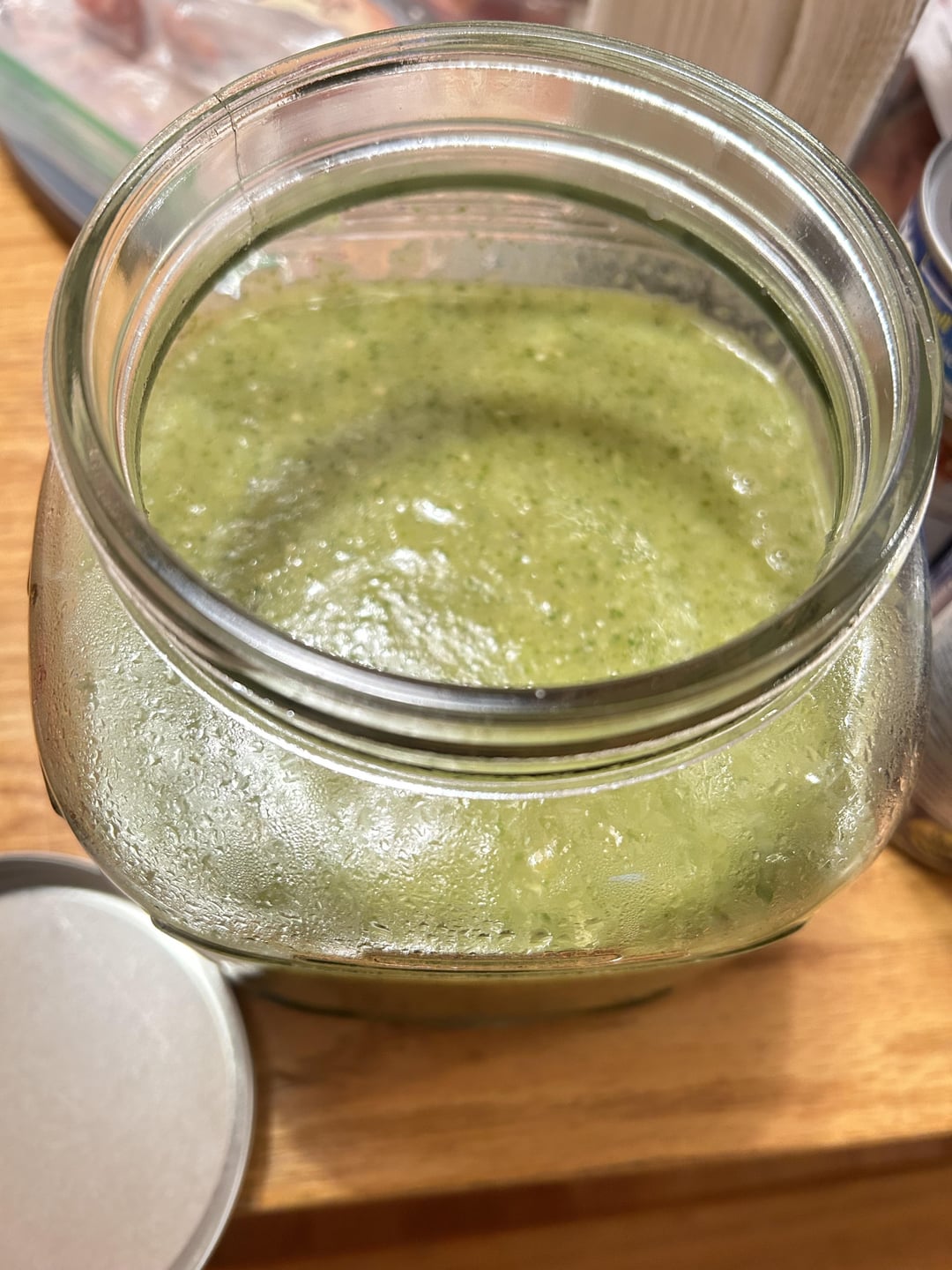 The next is about 2lbs tomatillos, a green jalapeño, six green habaneros, 3 cloves of garlic, a full white onion, a whole bunch of cilantro, juice of 8 limes, a bit of bouillon, salt to taste. Again, not super spicy to me, but this one has a creeping heat and the sort of bright tang I love.