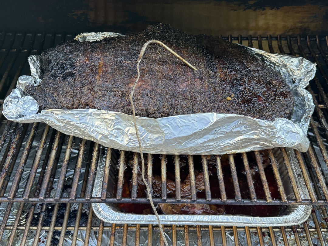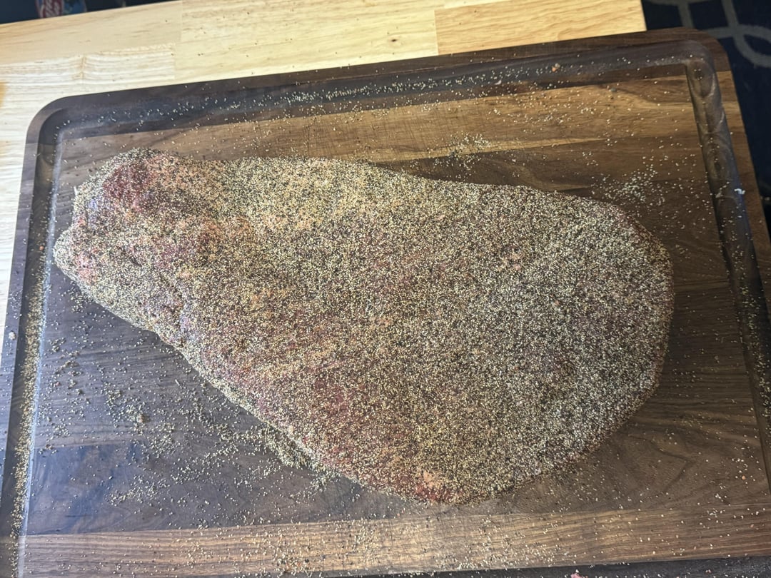 Costco had Prime this week in Winchester, VA so i snagged a nice 15 pounder with a flexible bend to it out of the case. Hacked off the mohawk and a bit to shallow on the fat cap in a spot but meatside may be my nicest trim to date. Smoked trimmings and made tallow. SPG home blend & CC pellets in the Timberline 1300 overnight 180° for 9hrs >225> foil boat at IT 170°> 250° to probe tender in the point (IT 201°). Counter rest to cool and then into a cooler to finish resting …sliced pics to follow.