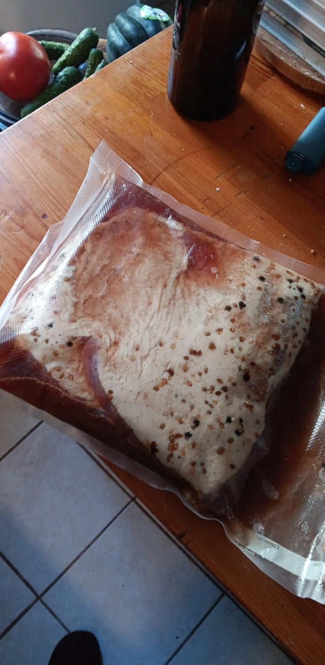 Didn't want to take up too much fridge space so I vacpacked it during the brining processTurned out great, 5 day brine 5 hour smoke to 160, three hour steam till 203. Used the flat of a brisket I split.by mavric_ac 3 Comments coxy808 1 year ago How’d you steam it? VisceralCat88 1 year ago Fuhgeddaboutit mrcranky 1 year ago I use a sous-vide cooker for mine. Works great.Write A CommentYou must be logged in to post a comment.