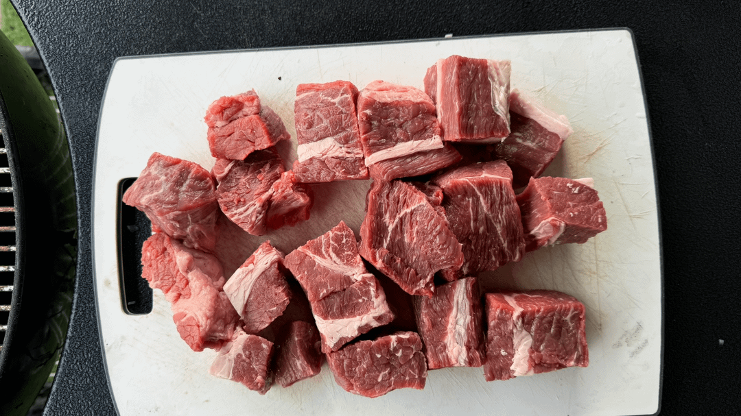 1. Cut up 2.5 pound of beef chuck into large cubes and season with salt (Picture 2)