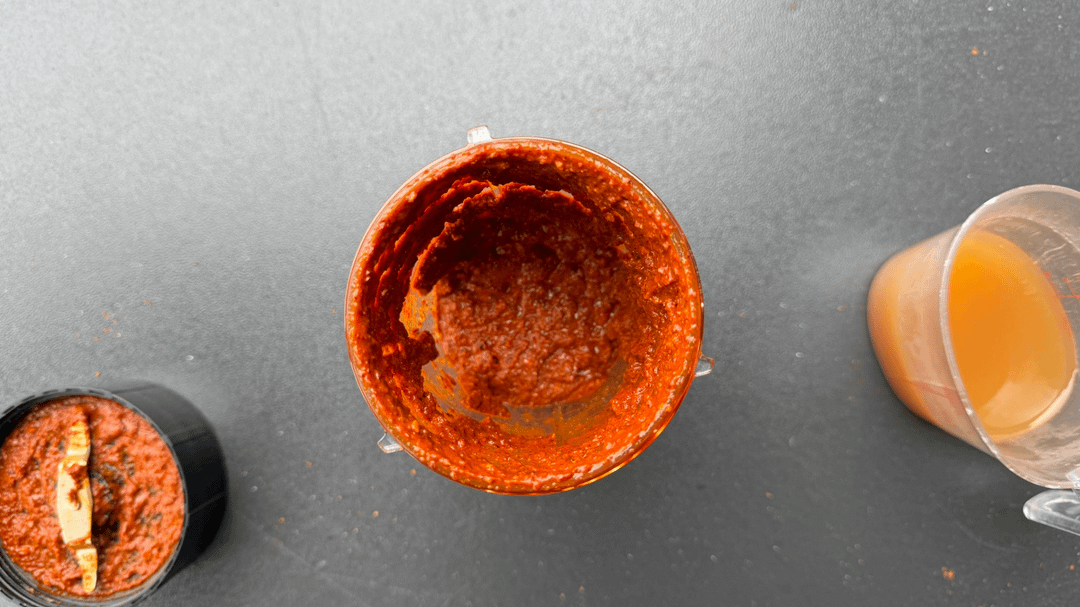 5. Make vindaloo paste by blending together: toasted dried spices, 20 cloves of garlic, 2” piece of ginger, 1 cup of apple cider or red wine vinegar, 1 teaspoon sugar (Picture 7)