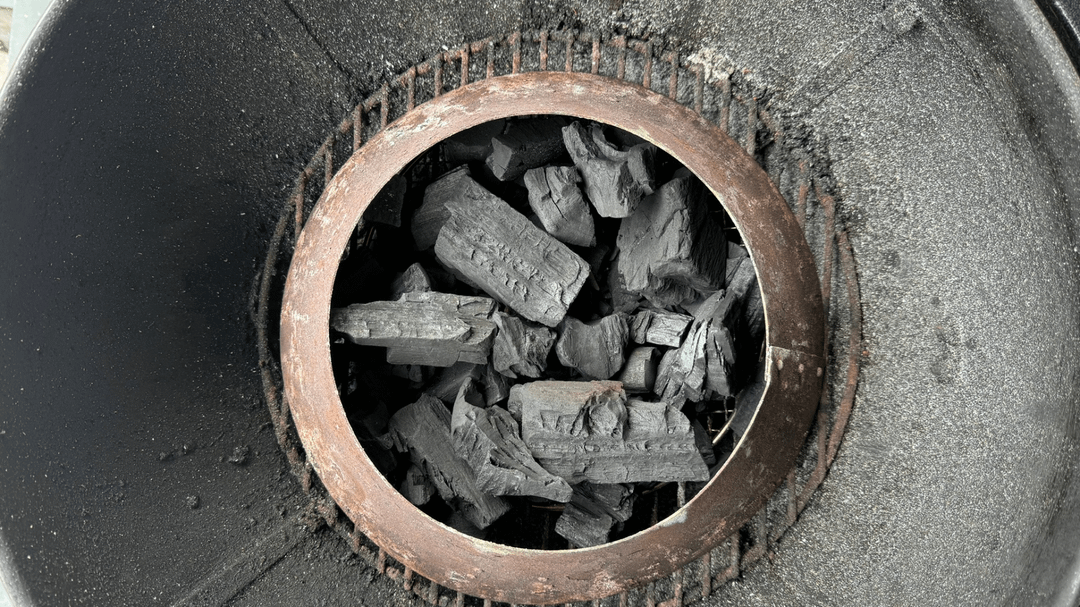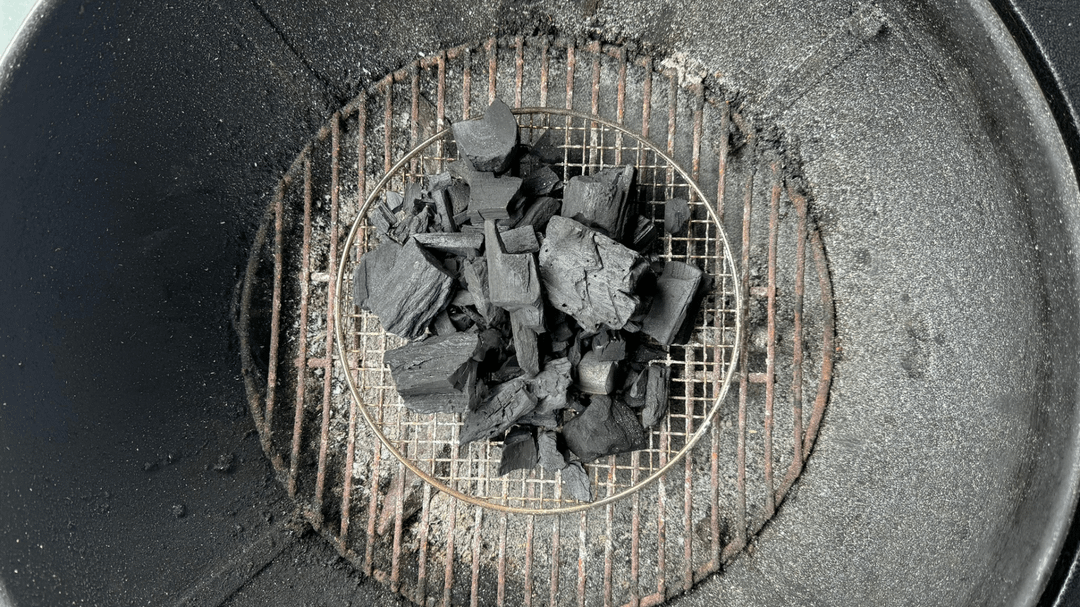 3. Heat up charcoal. (I used a finer grate to stop the lump charcoal from falling through and used a vortex) (Picture 4-5)