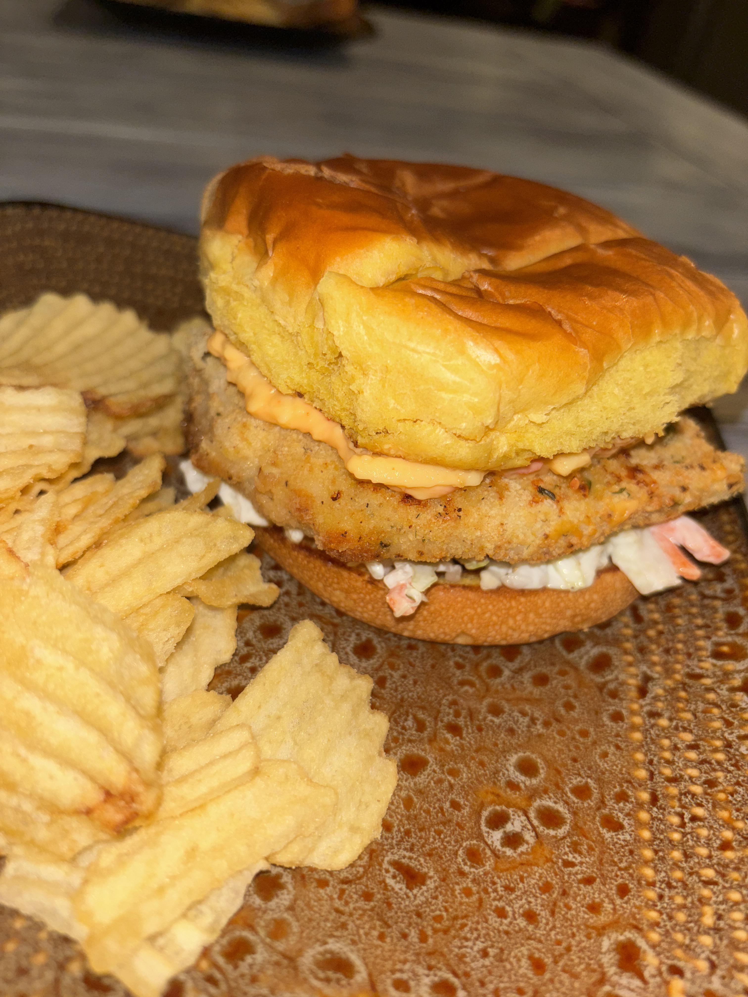 Inspired by the chick-fil-a pimento sandwich. Coleslaw and pimento with an air fried chicken breast. Also the sweet onion chips from Heb might be the best chips everby itsskirk Write A CommentYou must be logged in to post a comment.