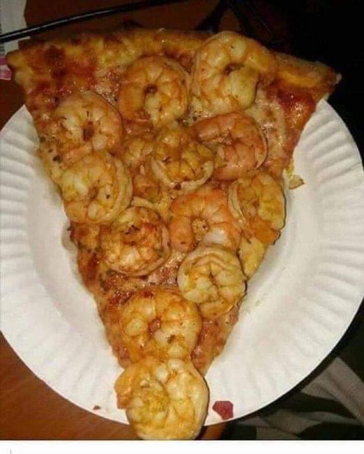 The resort my mother used to be a waitress at had a shrimp pizza (smaller than what are pictured). It was actually good. It used a cream sauce instead of marinara.