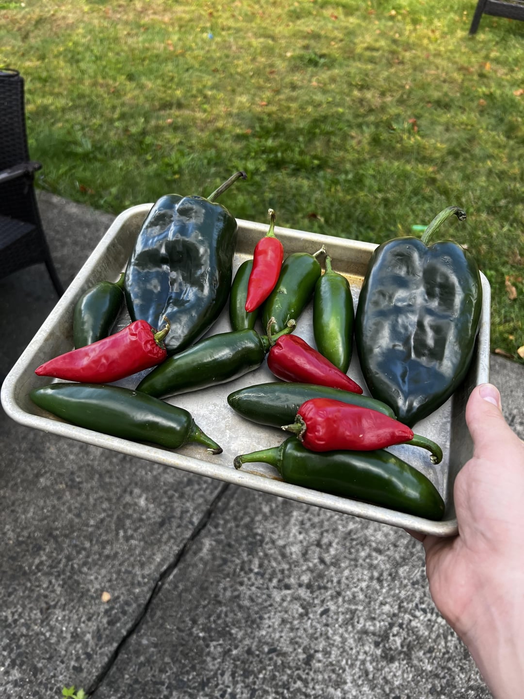 Poblano, jalapeño and Fresno peppers roasted and cored