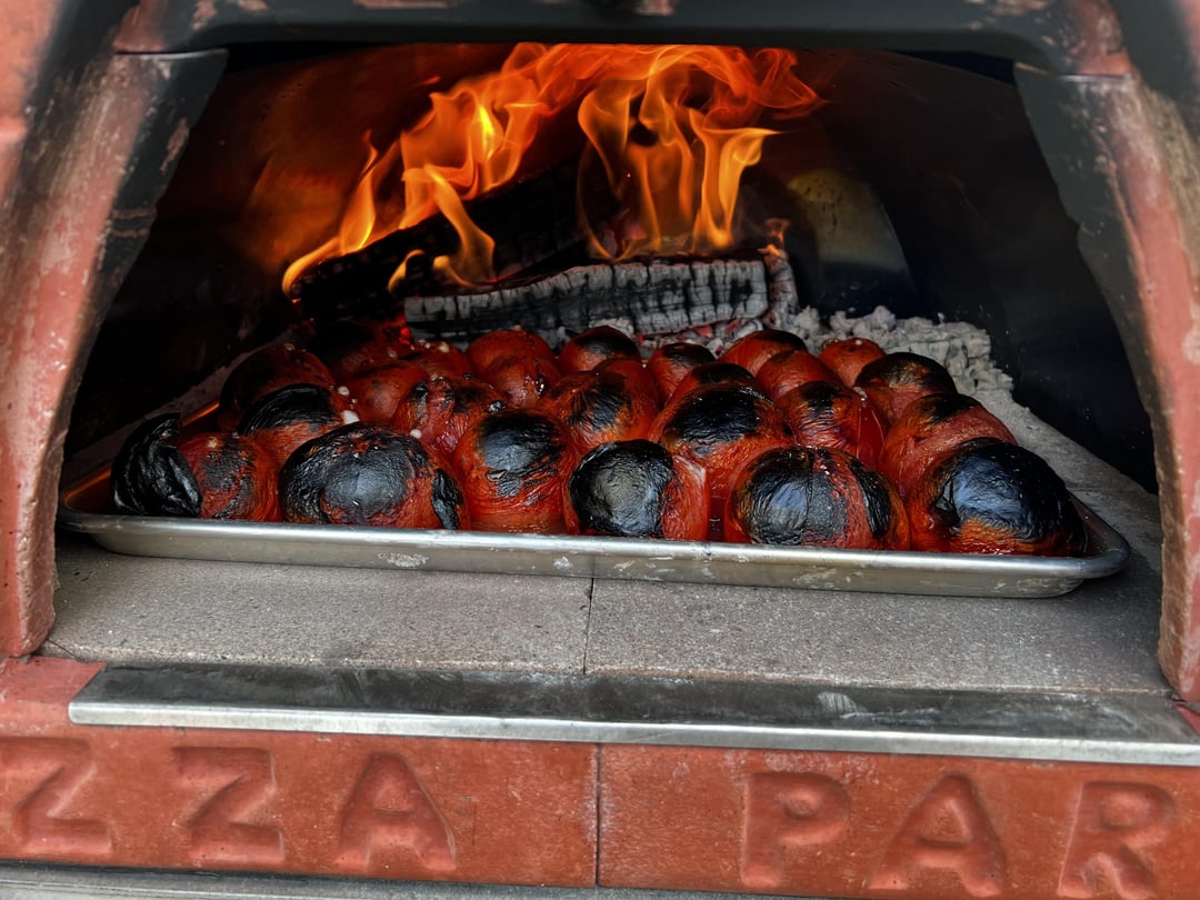 Made my roasted salsa today in my pizza oven instead of on the grill.