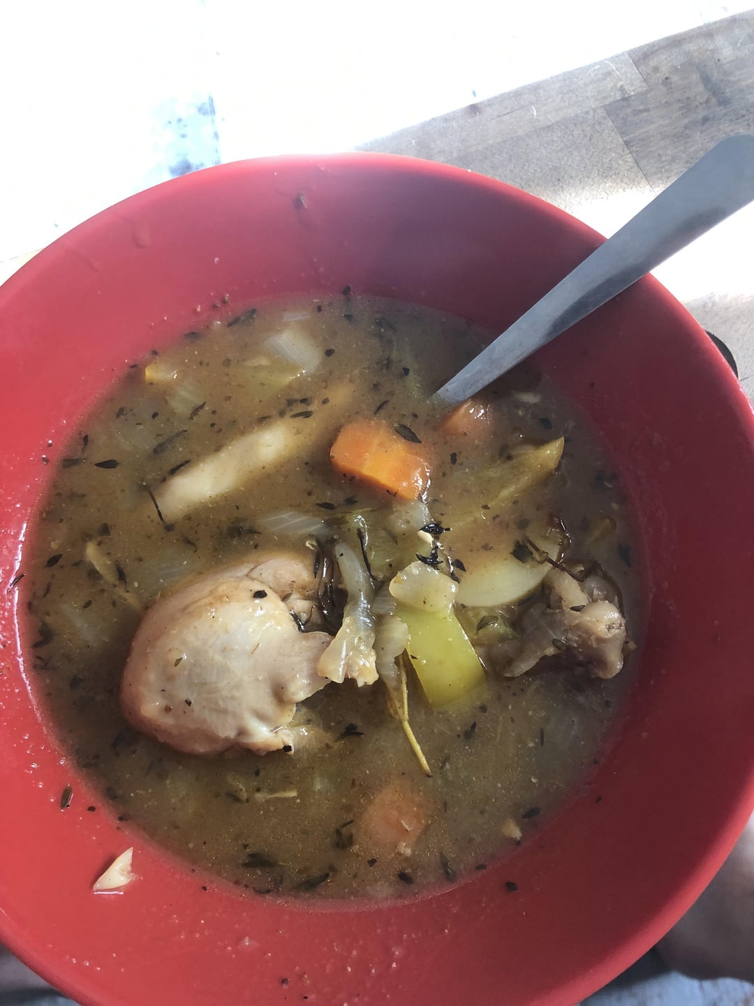 Cockrell and vegetable soup with spinners (Caribbean soup)