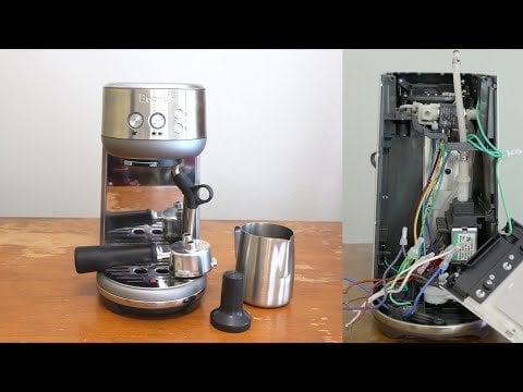 Second, most if not all of the prosumer machines have a way to pre-heat the group head and keep it hot. Whether that’s with a thermosiphon in the e61 group head or a PID in something like the Bezzera BZ10. These machines are able to do this because they have large amounts of metal in the group head that can act like a giant thermal battery and buffer. That thermal battery takes time to charge. So, if your expensive machine uses a boiler, you are waiting the 20ish minutes for the water to come to temp, but you’re also waiting for the group head. This thermal mass at the group head allows for the temperature stability of these machines. Breville designed the Bambino and Bambino plus to be affordable, so they did not include all of the expensive metal or the heating elements at the group head. The bambino depends on the heat of the water destined for your coffee to warm the group head. Now take a look at the teardown video. You’ll notice that the bambino is basically all plastic after the heater until the group head. Tech Dregs discusses this at the end of his video too, but this all-plastic design is a feature. It was done on purpose.  Not only to make the machine more affordable, but it allows the Bambino to achieve the advertised 3 second warm up time. You cannot have 3 second ready time and the thermal stability at the group head of a prosumer machine. Adding all of that metal would mean a 10-20 minute warm up period (hence why a $4000 machine cannot get around the warming period and give you 3 second ready time). A machine can have temperature stability but temp stability at the heater and at the group head are NOT the same thing. Many people are spending thousands to get around this.