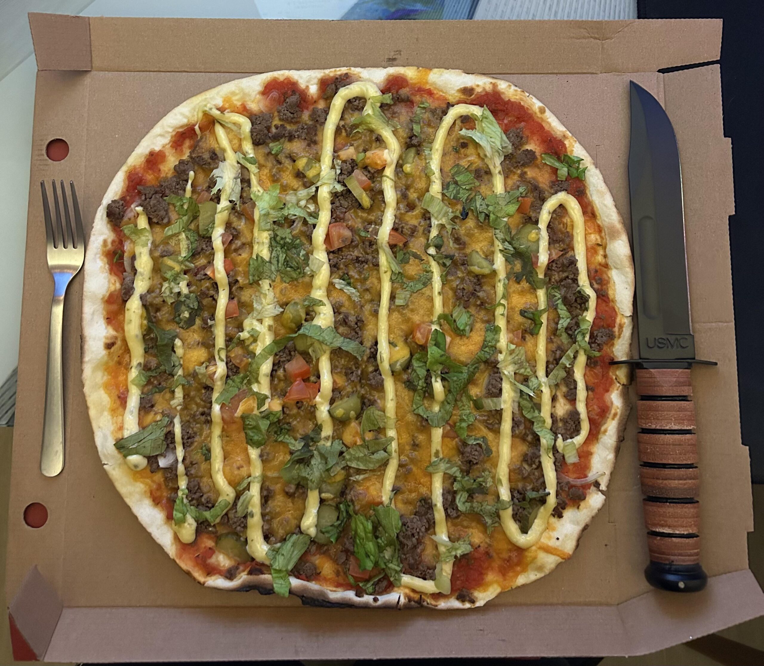 Cheeseburger pizza isn’t that uncommon or weird. It’s not my bag but it’s a thing