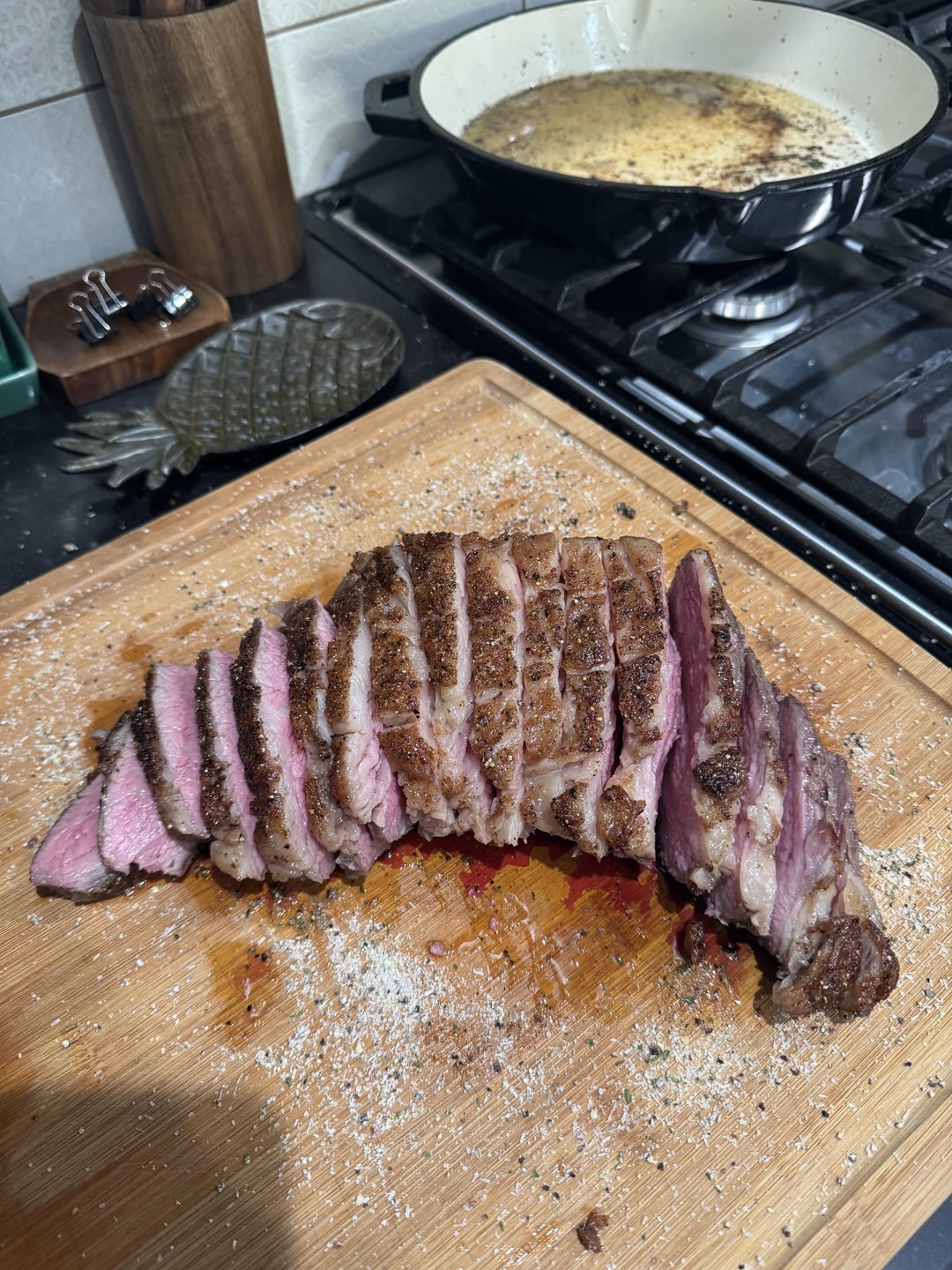 134 for around 5 hours. Seared in an enamel cast iron pan. No seasoning in the bag, but Bolner’s Uncle Chris’s Steak Seasoning. by beaker90 Write A CommentYou must be logged in to post a comment.