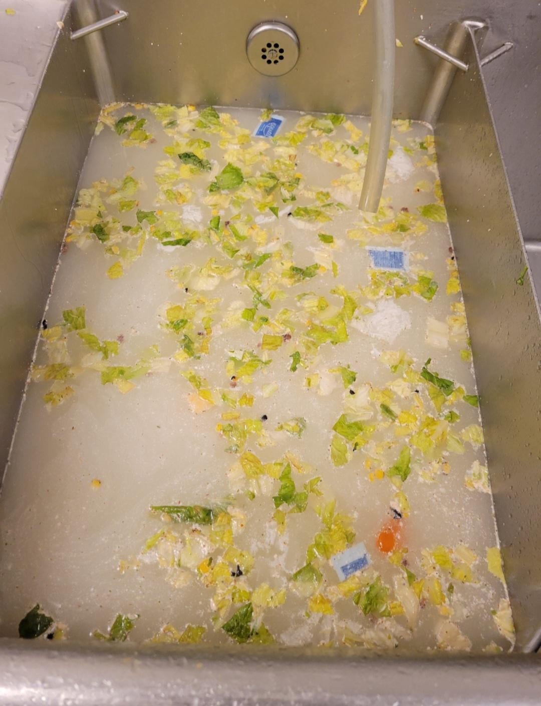 (No dishes were soaked or washed in this water. I was pre rinsing/washing plates over this sink so that my coworker on the machine would only have to stick them in, and I cleaned out the sink immediately after this picture was taken)