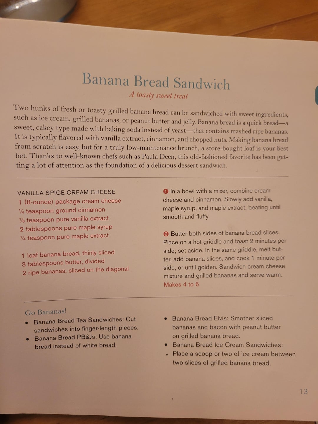 Continuing my mission to make as many sandwiches from The Encyclopedia of Sandwiches (by Susan Russo) as I can, #15 is the banana bread sandwich. My banana bread was structurally unstable, so I had to eat it with a fork, but I really liked it! Crispy sweet bread, it was kinda like banana cake with cream cheese icing. I don't have maple extract, so I just added more maple syrup until it tasted good.
