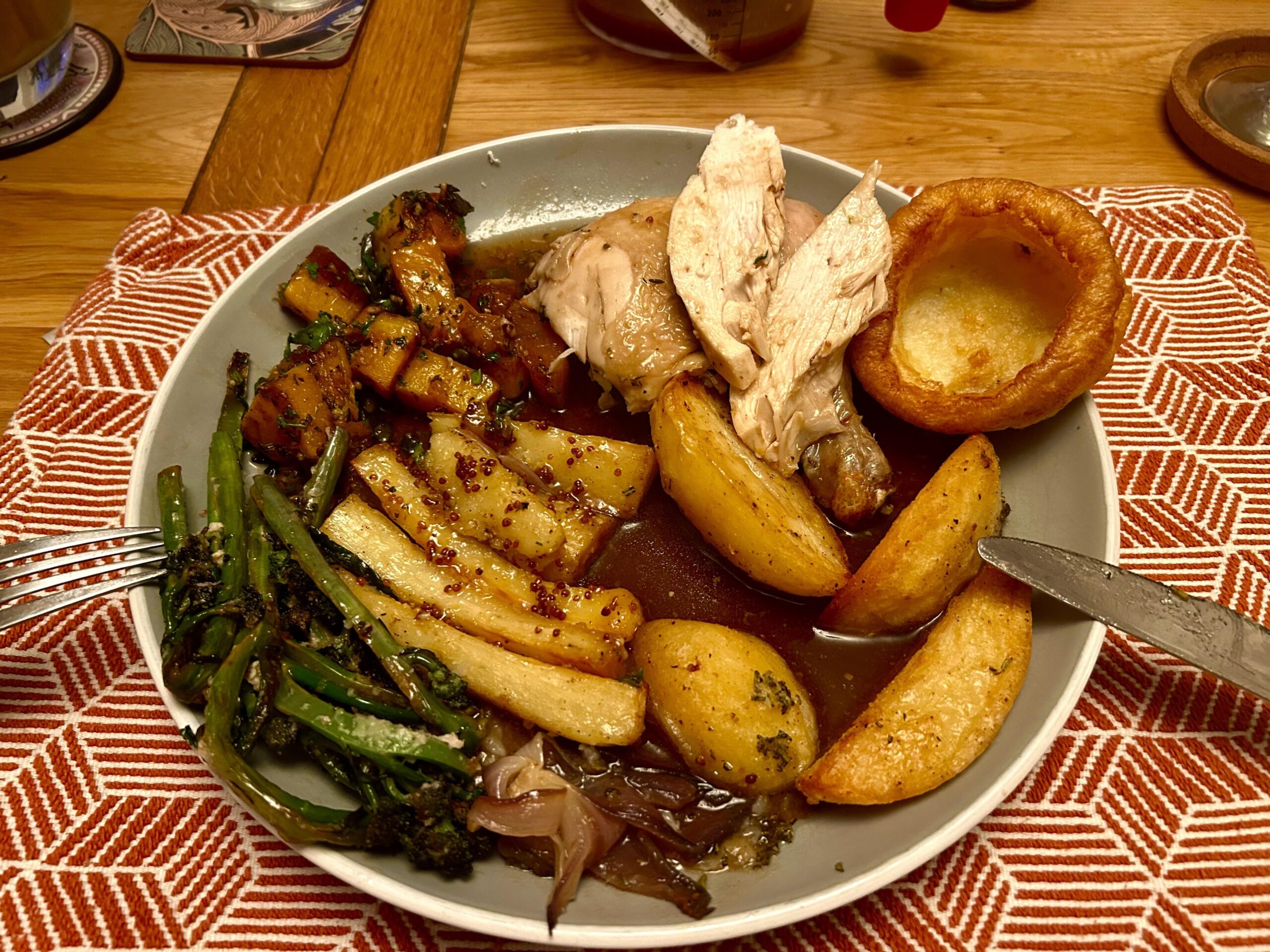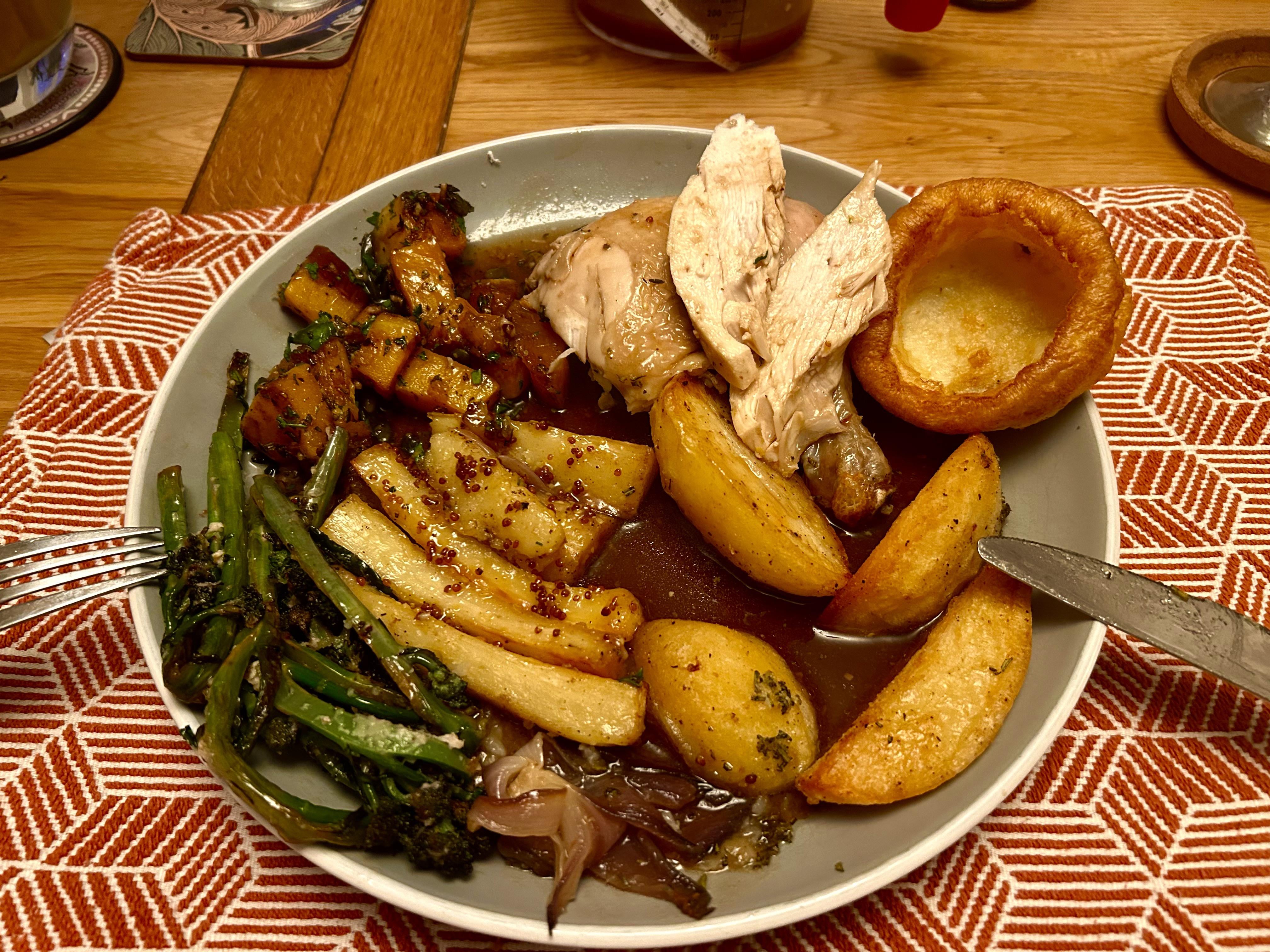 - Cheat using frozen Yorkshire as has to be gluten free and dairy free and have never managed to get it right.