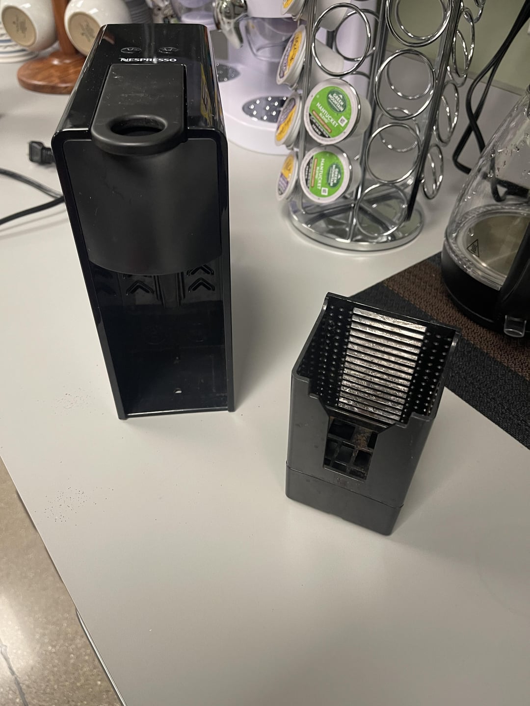In an office situation, the drip tray is going to be nice to have so you don’t leave a preventably stupid mess on your desk or in the break room without resorting to towels. Plus, the little machine looks complete with the cup holder extension. If your cups don’t fit under it, you’re using the wrong cups. Get appropriate drinkware for espresso, which is not only perfectly suited to the task, demitasse will elevate your Cool Quotient, especially in the eyes of all the Keurig sheep that surround you.