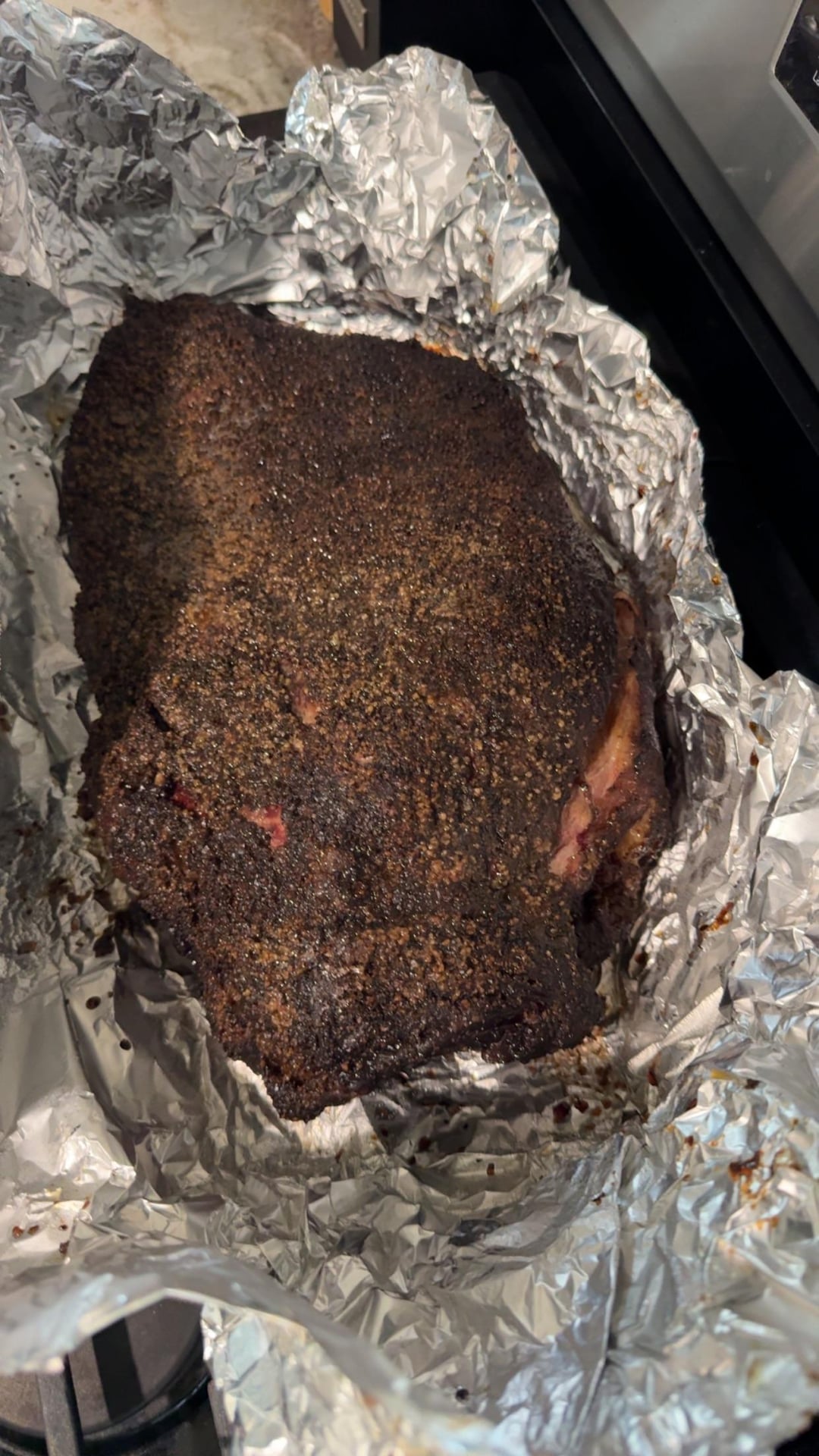 Ran it back after a crappy first round. When I say crappy, meaning it took forever, over 2 hours a pound. This cook was a 12 pounder at around 15 hours. Cooked to 175. Wrapped. Pulled it at 205.