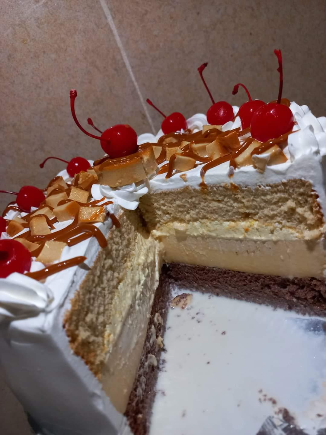 In Mexico we know it as angel kiss cake It is a chocolate and vanilla sponge cake, bathed in 3 milks, with a Neapolitan flan filling. It’s delicious!!🍮🍰