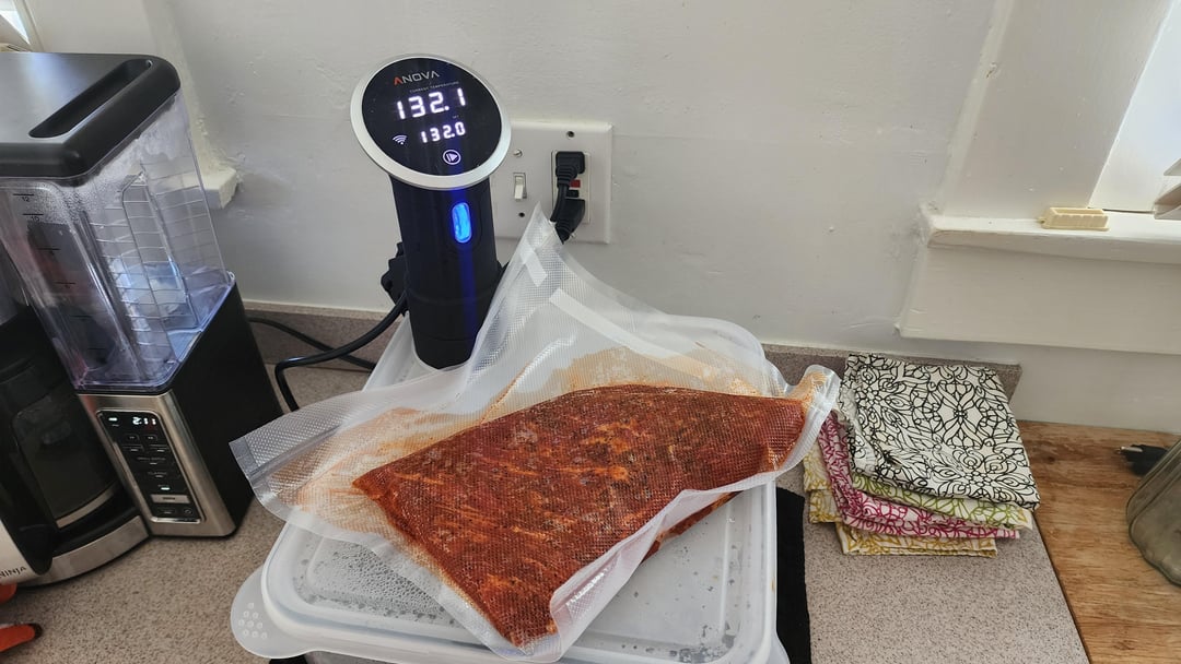 Tri-tip: 8-hours @ 132°F then seared in cast-iron.