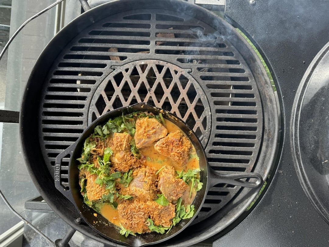 TLDR: I was experimenting with adding some more smokey flavor to biryani by smoking some of the ingredients. I found that if you smoke the biryani gravy and meat, it adds another dimension of flavor. It tastes like classic biryani…but also like barbeque..which worked pretty well IMO.