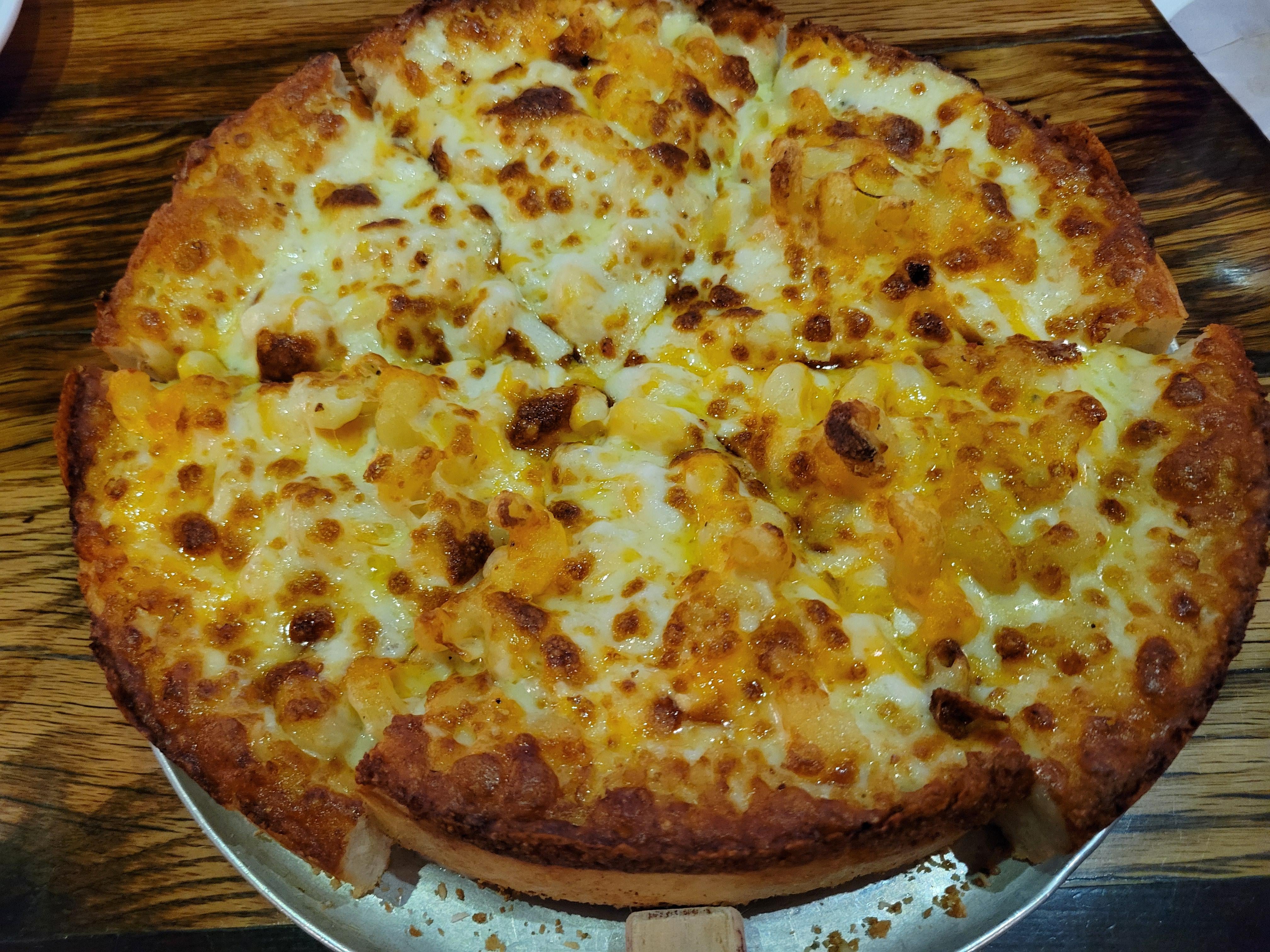 Before we left Chicago, I told my brother we had to get an authentic deep dish Chicago style pizza. Well! I wouldn’t be a true Wisconsinite if I didn’t try the macaroni and cheese flavored deep dish pizza. No tomato sauce, all cheeses. 🥰