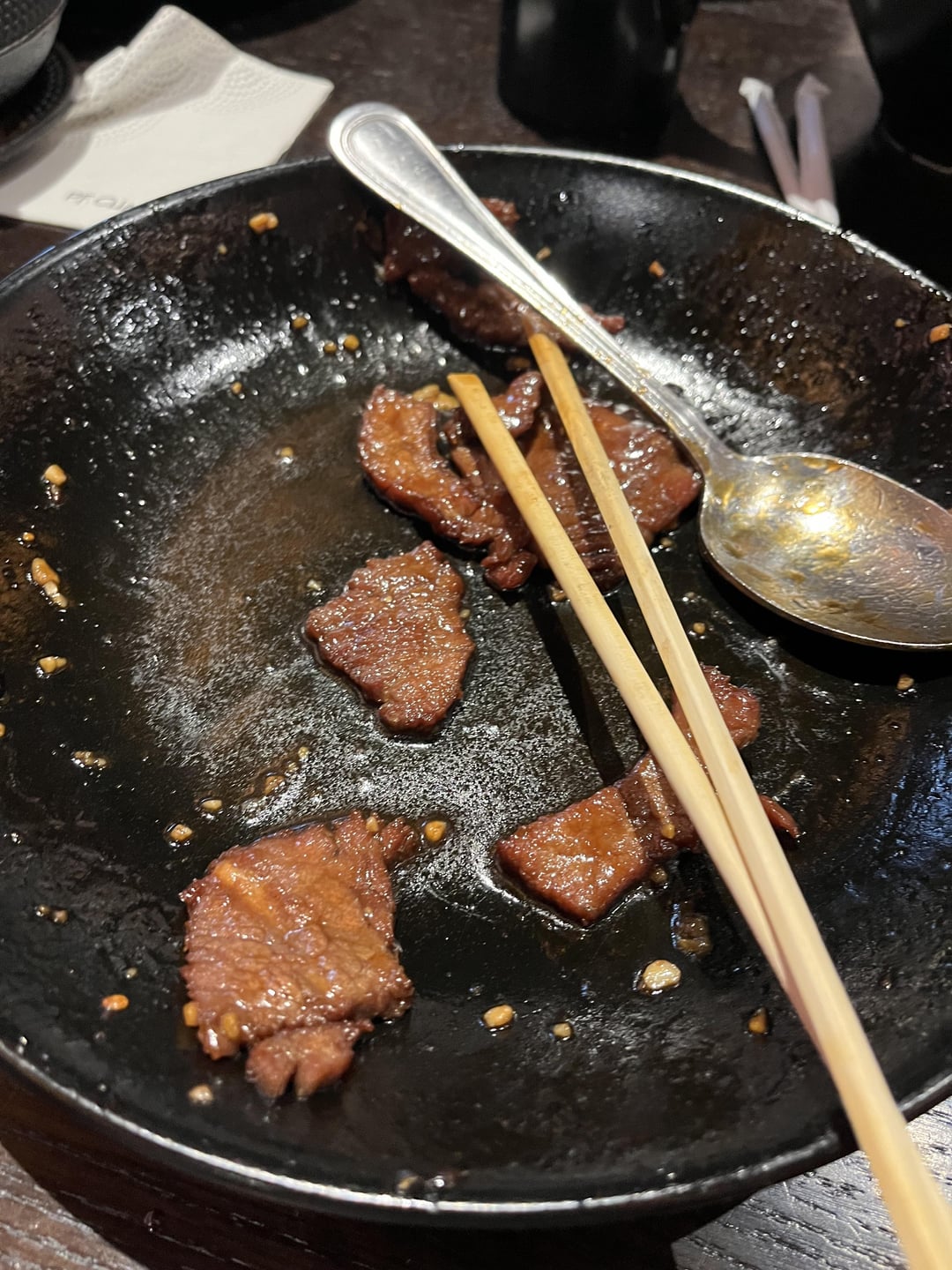 When I ordered this dish I was happy to see it came with green onion, but I assumed it would just be a garnish or something. I was so happy when i saw my food come out and it was covered in green onion. They were so good and fresh and went amazing with the beef and sauce. I couldn’t finish the beef, but I ate all the onions