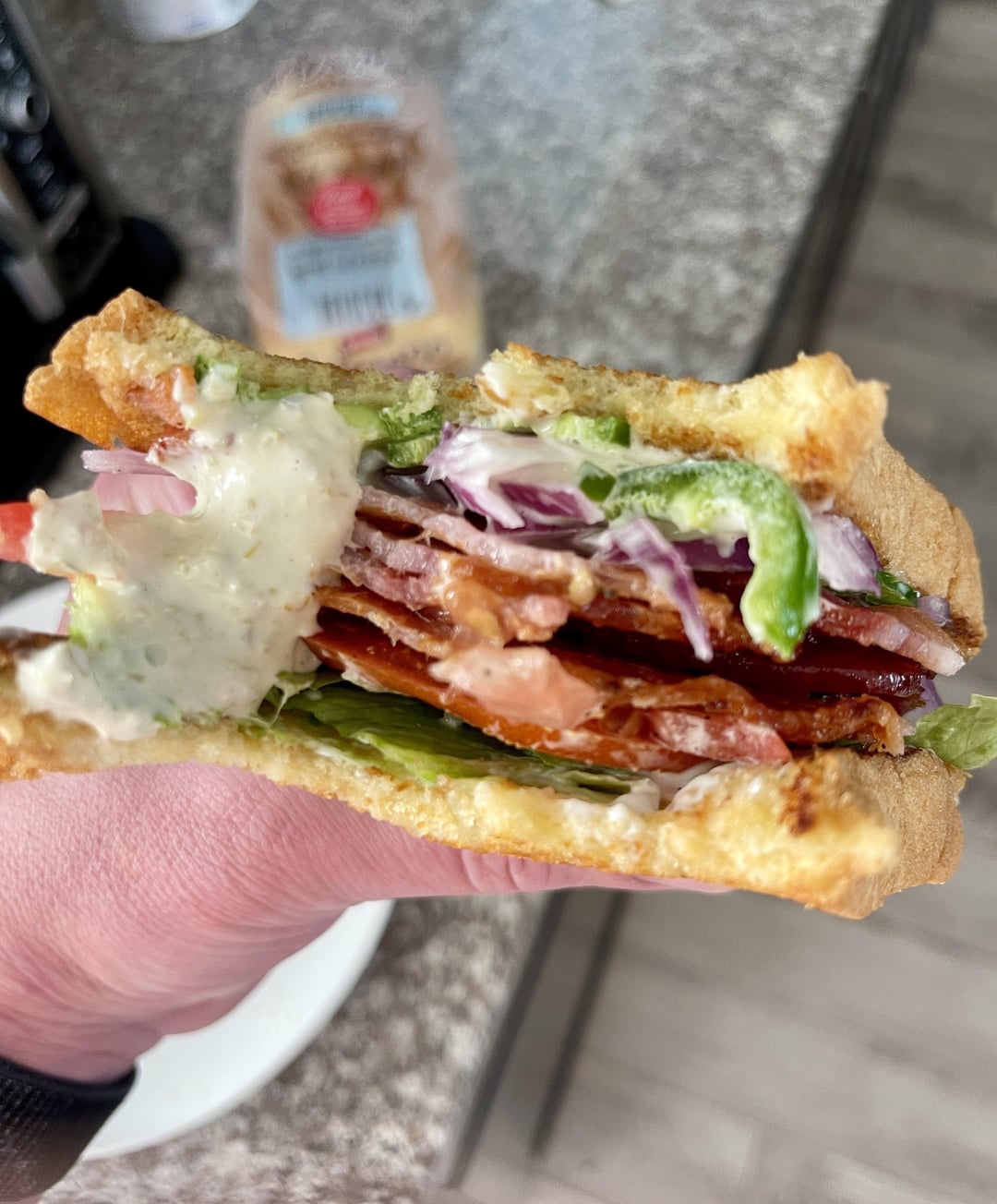 BLTOJ on lightly toasted brioche w/ side of jalapeño creamby Id-rather-golf 2 Comments whiskyzulu 1 year ago BEAUTIFUL! avmist15951 1 year ago Oooo is that jalapeno cream homemade or store bought? It homemade, recipe? If store bought, where?Write A CommentYou must be logged in to post a comment.