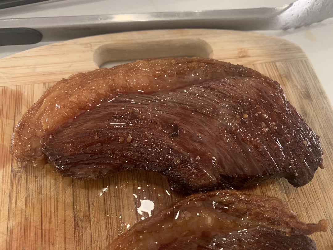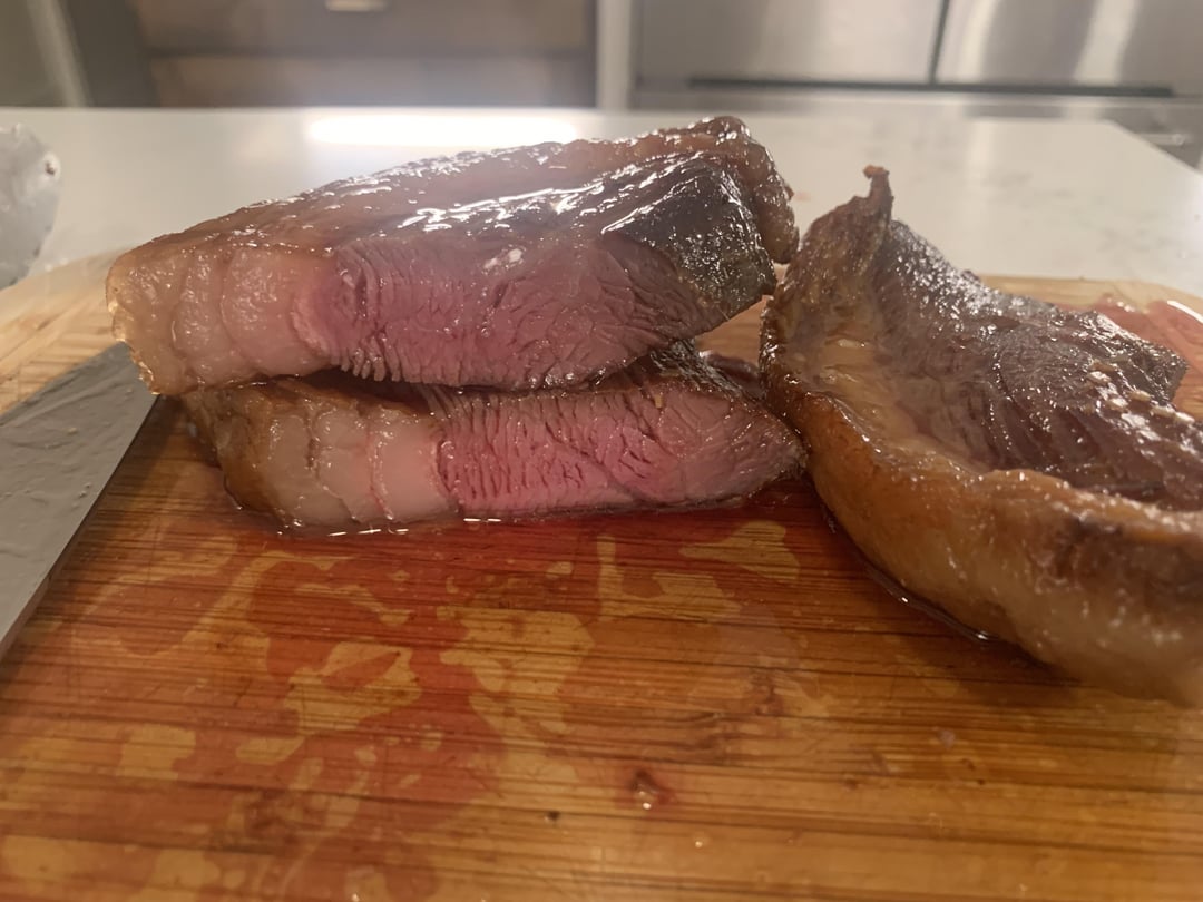 Found this at Costco after striking out for a long time. SV for 12 hours at 131F with just salt, then sliced with the grain into ~1” steaks. More salt, then seared total of 2 min per side in tallow. It was good (but not the best I’ve had), the fat cap was soft and the meat was tender. If anyone has pro tips I’m all ears!