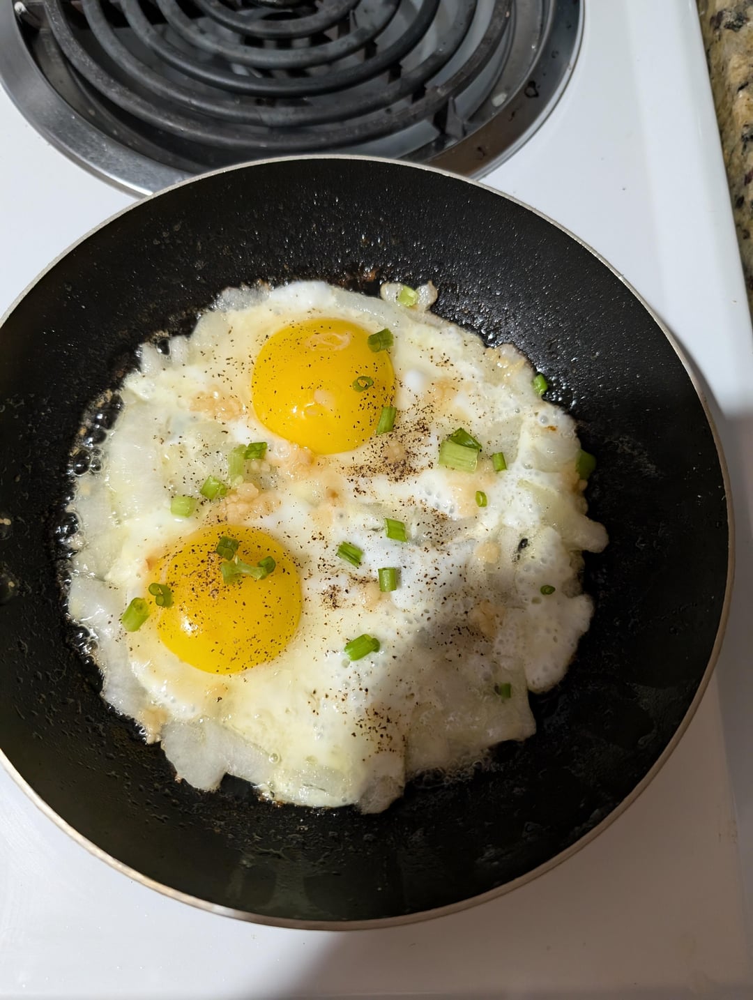 Anyone else steam their eggs on top of a bed of sweet onions then top it with garlic and green onion? It's so good I have this about twice a week. I keep a cup of green onions on the counter just for this. I look forward to it after a long days work 🧅❤️