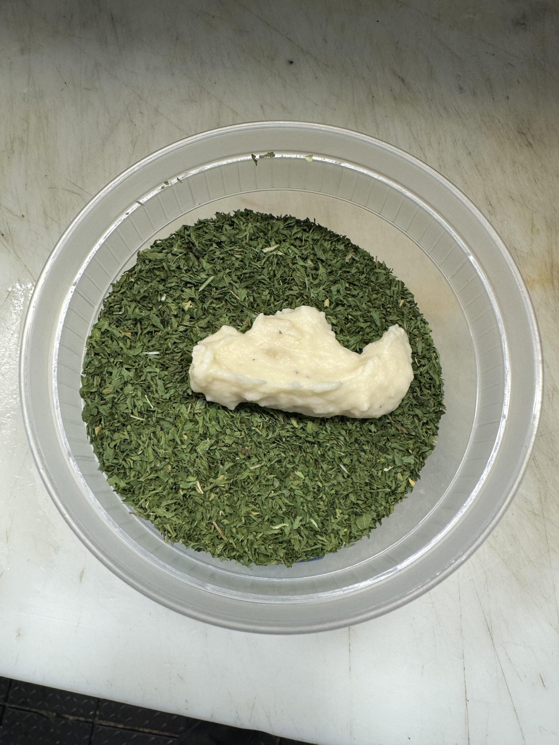 GabeTheGriff 12 months ago Of course there is lol just take the lil gob of mash out and add a liiiiitle bit less than a tsp of parsley since it’ll be stuck on the potatoes.