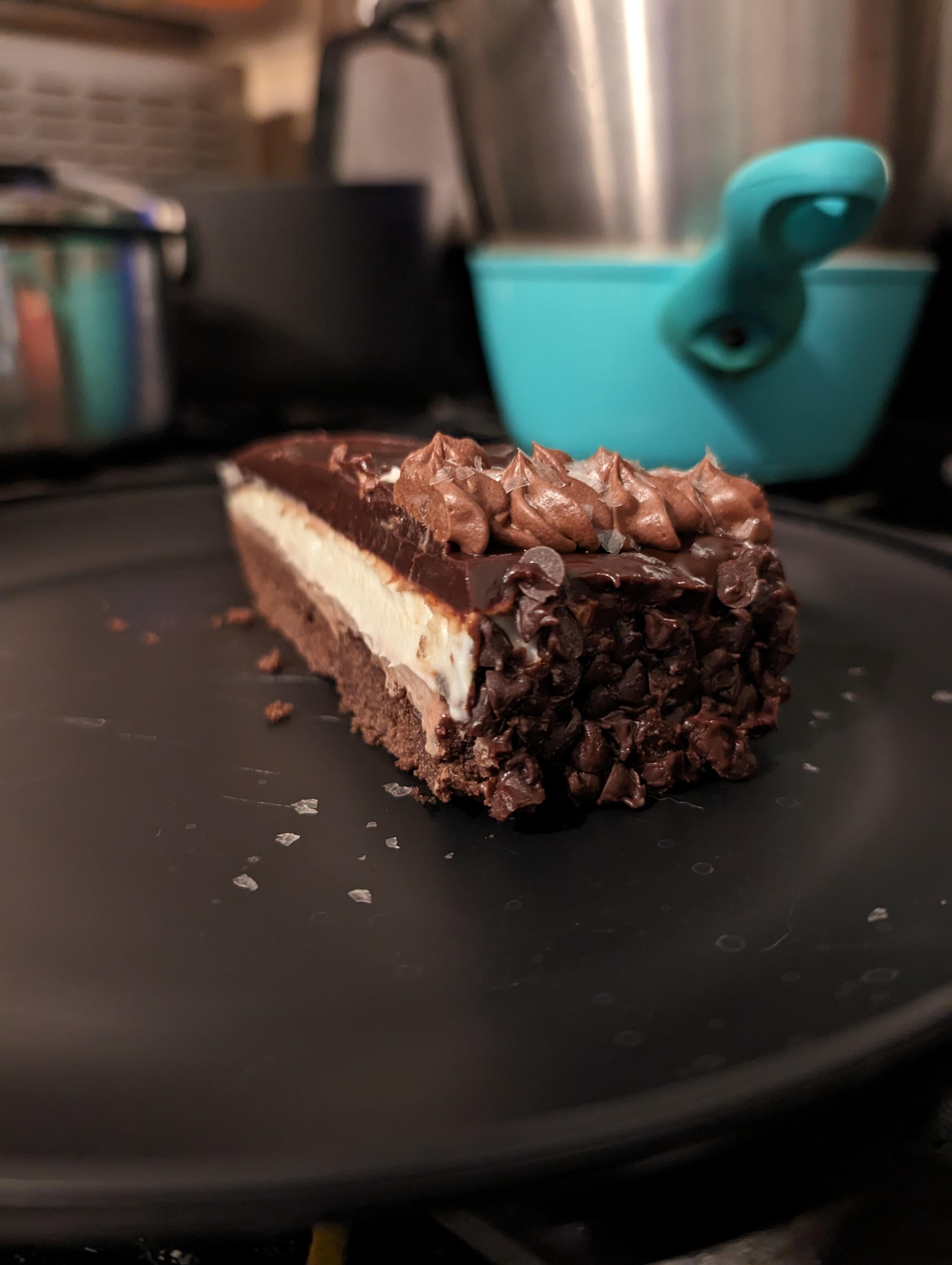 I made a beautiful black tie mousse cake for the first time! I was craving olive garden but whose paying for that? And it would end up being trash I just know it. So instead I made the cake, around 1.47$ per slice, 14 slices out of the cake! 😋 I froze half and will see how that thaws soon