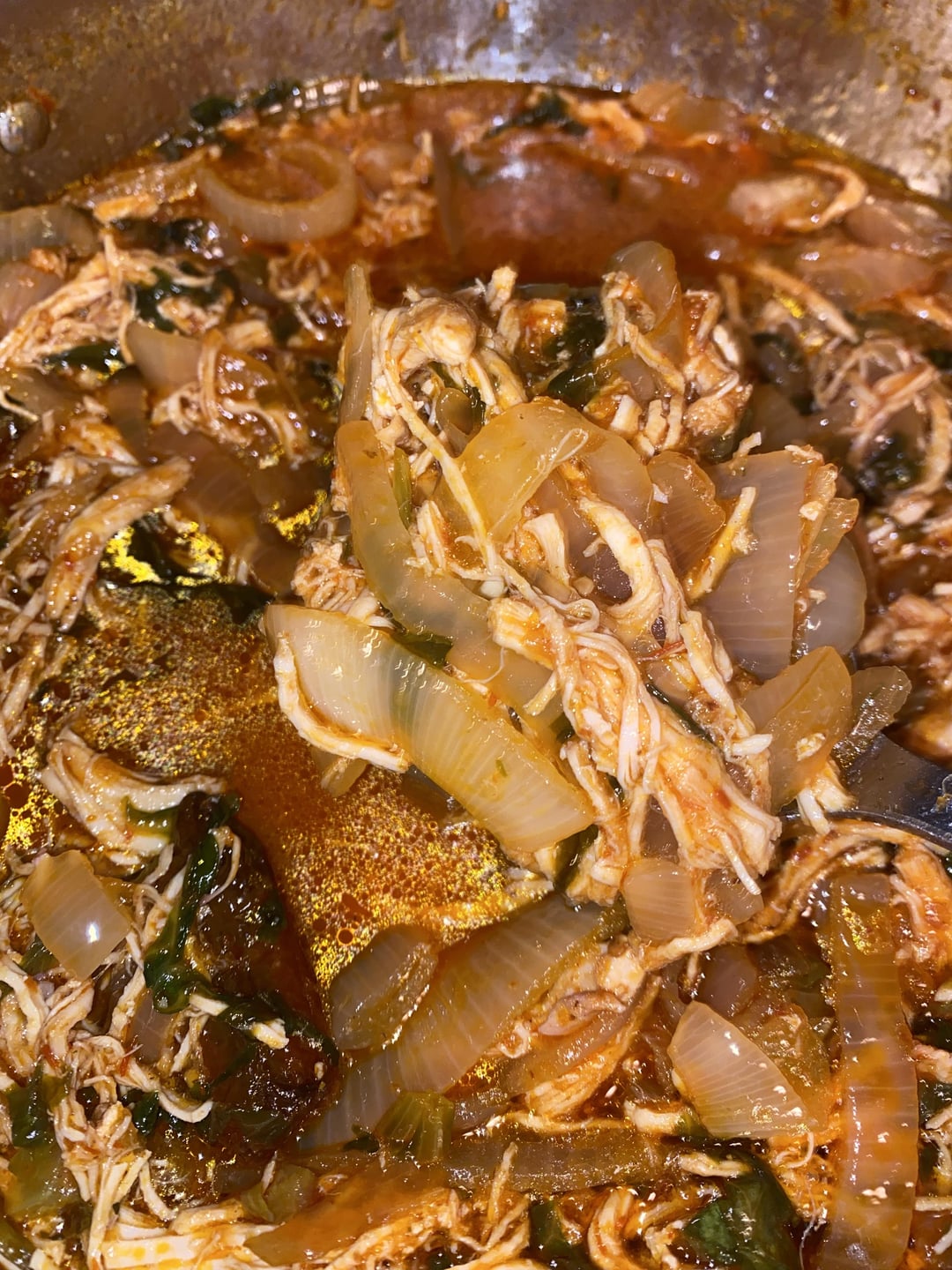 Its not AS red bc some of our family members cant stand spice, and my mom has always put lettuce in our tinga which i found it more tastier. Pero asi estamos 😙🤌🏼