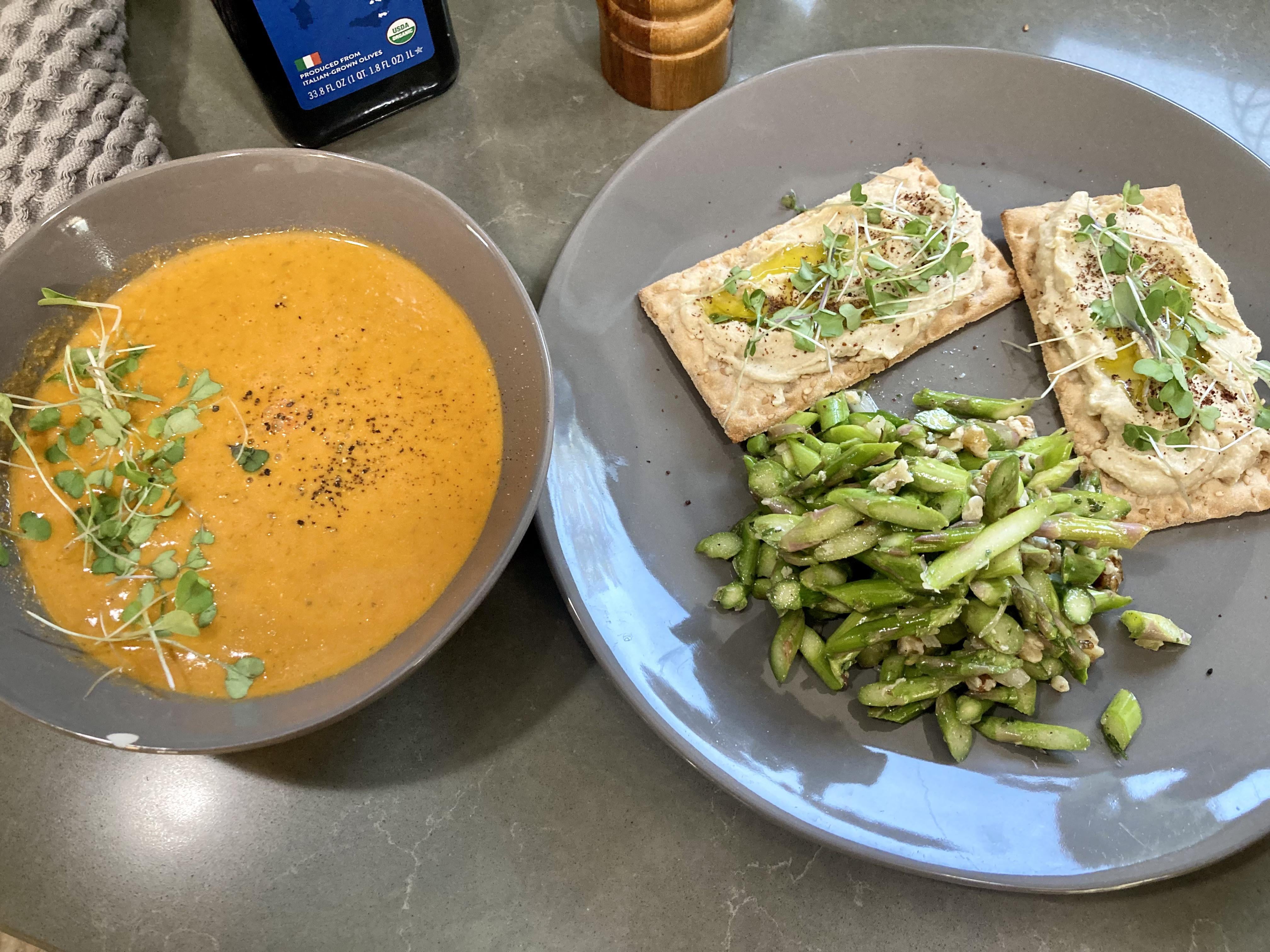 Trying out some new recipes. 10/10 will make again.Roasted red pepper tomato soup from scratch, Wasa crisps with hummus & asparagus/walnut salad.by itzcoatl82 Write A CommentYou must be logged in to post a comment.