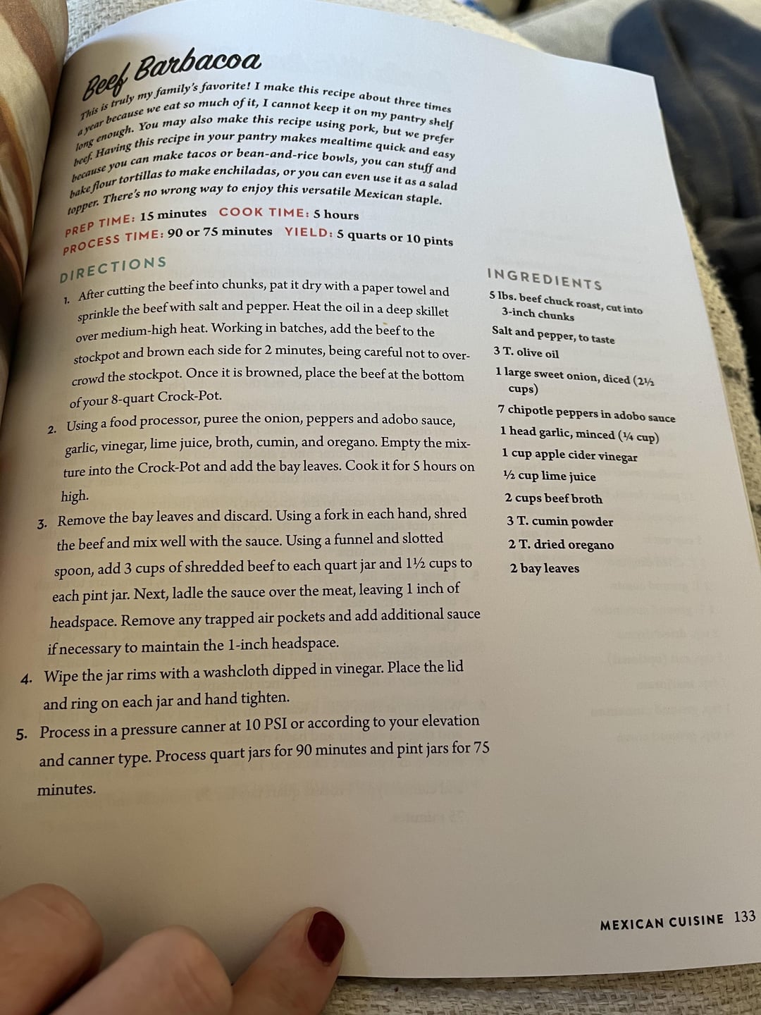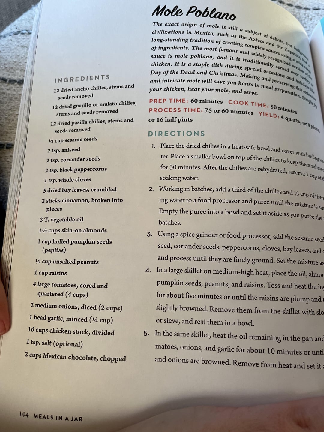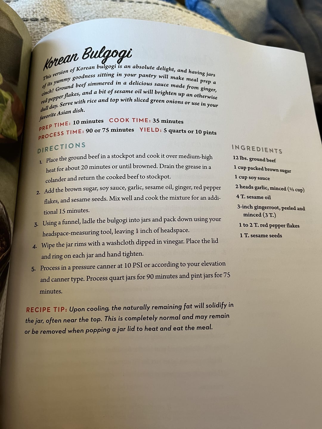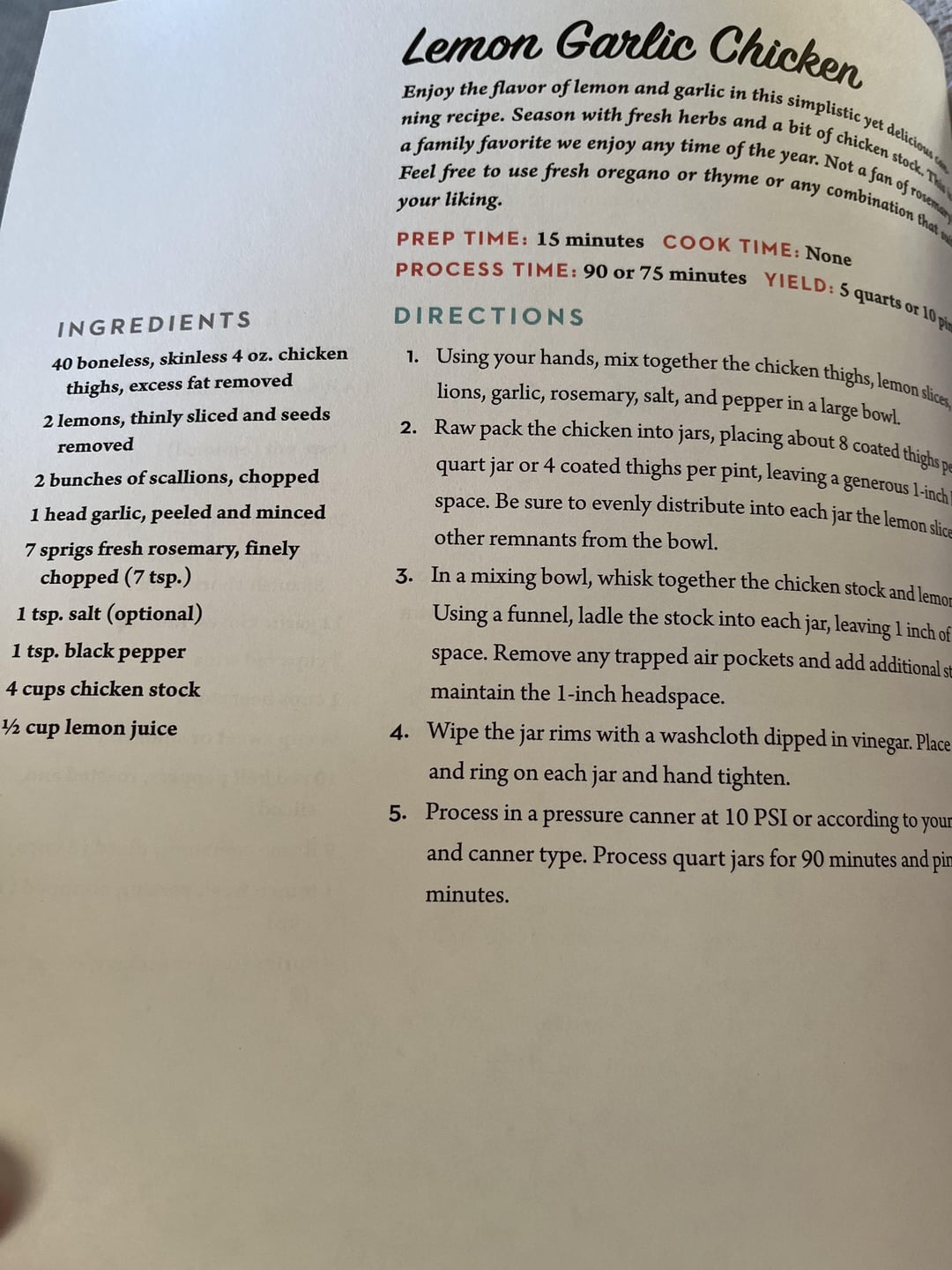 for alternatives for are Lemon Garlic Chicken, Korean Bulgogi, Beef Barbacoa and Mole Poblano Sauce. I will post the actual recipe in pictures as well. I know I could make them and freeze them and I do freezer meals all the time but I like in an apartment with a tiny freezer and am hoping to find a way to safely can some quick dinners