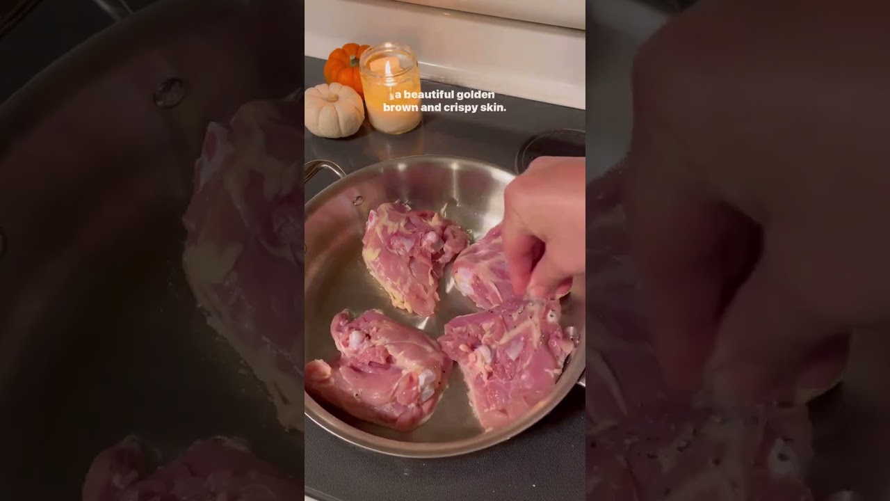 1. Trim excess fat and skin off chicken thighs and season both sides with salt and pepper.